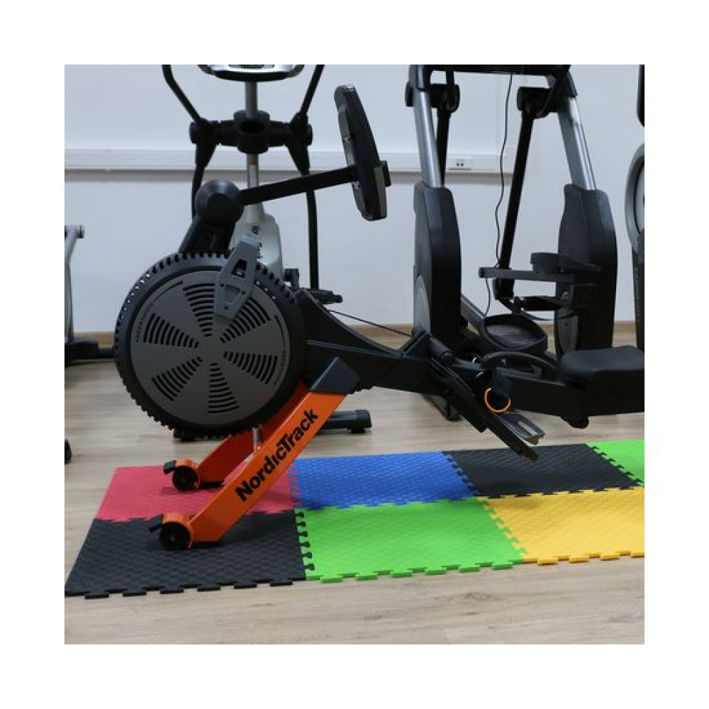 Мат - пазл будет отличной защитой вашего напольного покрытия от различных повреждений, которые могут возникнуть при использовании тренажеров. Так же мат обладает шумопоглощающим эффектом, создавая наилучшие условия для тренировки. Материал, из которого изготовлен мат - сшитый пенополиэтилен плотностью 100 кг/м3, а толщина мата - 8 мм.Крепление "ласточкин хвост" позволяет соединить вместе необходимое количество матов. Обе стороны мата имеют тиснение и являются рабочими.Мат имеет в комплекте 2 бордюра, благодаря чему конечный коврик будет иметь аккуратный внешний вид.