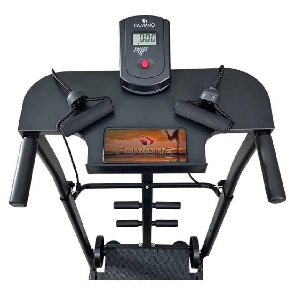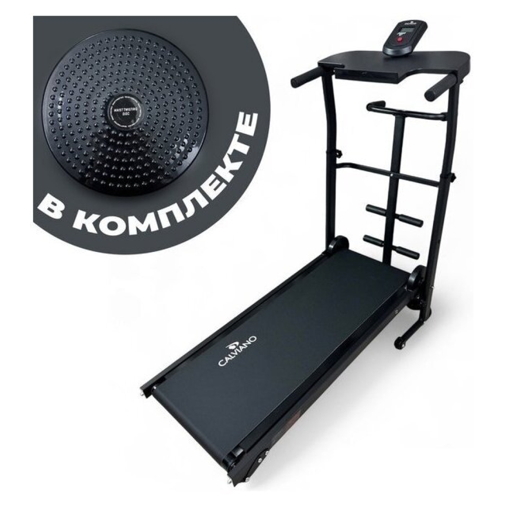 | Особенности | Прочная и надежная конструкция;Эспандеры для рук;Диск здоровья;Широкая подставка для планшета или смартфона;На встроенном ЖК дисплее вы сможете осуществлять контроль за показаниями тренировок: время, скорость, израсходованные калории, пройденная дистанция;Регулировка угла наклона полотна: 2 положения;Регулировка поручней по высоте: 5 положений;Беговая дорожка оснащена двумя транспортировочными роликами для удобства перемещения;Складная конструкция беговой дорожки Calviano BeFIT обеспечит удобное хранение даже в небольшом помещении. |