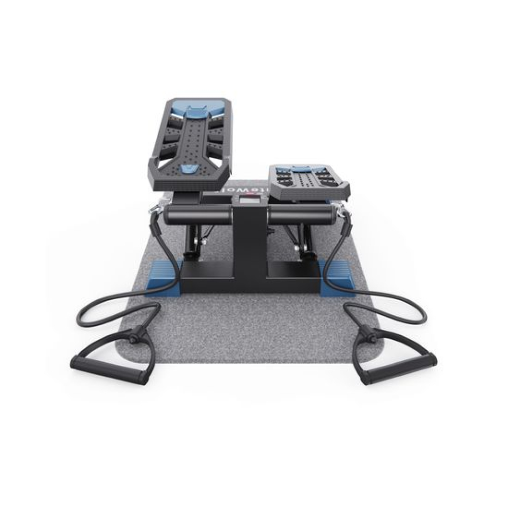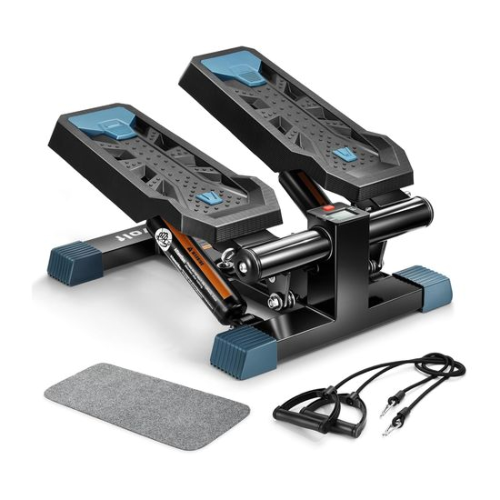 Министеппер с эспандерами DFC CUTEWOLF — идеальный выбор для домашних тренировок! Это компактный, но функциональный тренажёр, оснащенный двумя эспандерами длиной 94 см для дополнительной нагрузки на руки и плечи.Степпер способен выдержать пользователя весом до 120 кг и имеет компактные размеры 39,5 x 32 x 18 см. Гидравлическая система обеспечивает плавное и последовательное движение, а благодаря механической регулировке вы сможете настроить уровень сложности под свои потребности.Удобные нескользящие педали степпера имеют размеры 31 х 12,5 см, а благодаря ручке на раме тренажёра вы можете регулировать высоту их подъёма от 9 до 26,5 см, выбирая оптимальный уровень нагрузки. Чем выше поднимаются педали, тем больше усилий вам нужно прилагать, и наоборот.В комплекте с мини степпером идут съёмные эспандеры, коврик и инструменты для сборки и обслуживания. Монохромный LCD дисплей степера показывает время, количество сожженных калорий, количество шагов, количество шагов в минуту и режим сканирования, делая ваши тренировки универсальными.Степпер тренажер идеален для дома и особенно подходит для тех, кто ведёт малоподвижный образ жизни или хочет поддерживать хорошую физическую форму без интенсивных занятий в спортзале. Министеппер DFC CUTEWOLF отлично подойдёт для похудения, помогает укрепить мышцы ног, ягодиц, спины, рук и плеч, улучшить координацию движений и общую выносливость организма.