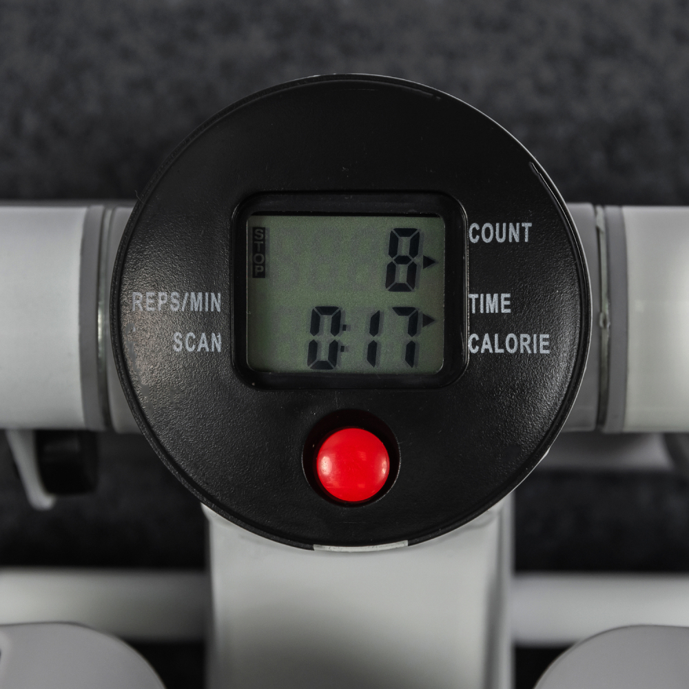 Мини-степпер с измененным видом педалей для дома! Простой функционал сочетается с высококачественными материалами, подходящим для аэробных упражнений всех членов семьи. Для занятий нужно всего 0,16 квадратных метра пространства. Заниматься сжиганием жира можно в любое время и в любом месте, слушая музыку или просматривая телевизор. Гидравлическая приводная система обеспечивает стабильное и безопасное использование тренажера. Внутренняя суперэнергетическая пружина защищает суставы и обеспечивает хороший амортизирующий эффект. Обратите внимание, что гидравлическая трубка нуждается в отдыхе после 20-минутных упражнений. Дисплей, оснащенный ЖК-монитором, который работает от 1 батарейки типа ААА, 1.5В, входящей в комплект, и показывает следующие параметры тренировки: время, количество шагов, общее количество шагов и калории. Он может контролировать и записывать ваши данные, которые помогут планировать вашу следующую тренировку. Большие удобные 3D-педали со съемными нескользящими накладками снижают вибрацию и легко моются. Угол наклона педали составляет 38° для повышения стабильности. Резиновый демпфер под каждой педалью отлично гасит звук и не мешает окружающим в квартире. 2 съемных эспандера в комплекте с рукоятками из пластика - тренируйте руки во всех направлениях. В комплекте защитное покрытие (коврик), предотвращает поверхность от царапин и превосходно заглушает звуки во время тренировки.