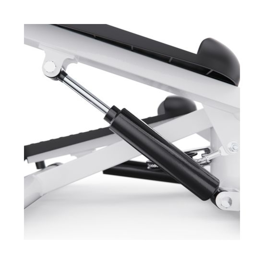 Министеппер с эспандерами DFC SC-S861 — идеальный выбор для домашних тренировок! Это компактный, но функциональный тренажёр, оснащенный двумя эспандерами длиной 70,5 см для дополнительной нагрузки на руки и плечи. Степпер способен выдержать пользователя весом до 100 кг и имеет компактные размеры 40,5 х 29 х 19 см. Гидравлическая система обеспечивает плавное и последовательное движение, а благодаря механической регулировке вы сможете настроить уровень сложности под свои потребности.Педали степпера имеют размеры 31,5 х 11,5 см, а благодаря ручке на раме тренажёра вы можете регулировать высоту их подъёма, выбирая оптимальный уровень нагрузки. Чем выше поднимаются педали, тем больше усилий вам нужно прилагать, и наоборот.В комплекте с мини степпером идут съёмные эспандеры и батарейка формата LR44. Монохромный LCD дисплей степера показывает время, количество сожженных калорий, количество шагов, количество шагов в минуту и режим сканирования, делая ваши тренировки универсальными.Степпер тренажер идеален для дома и особенно подходит для тех, кто ведёт малоподвижный образ жизни или хочет поддерживать хорошую физическую форму без интенсивных занятий в спортзале. Министеппер DFC SC-S861 отлично подойдёт для похудения, помогает укрепить мышцы ног, ягодиц, спины, рук и плеч, улучшить координацию движений и общую выносливость организма.