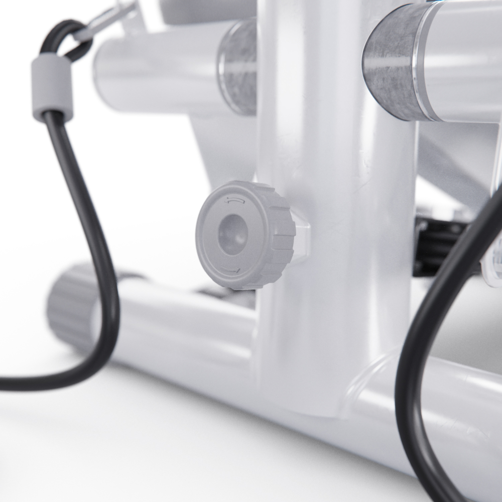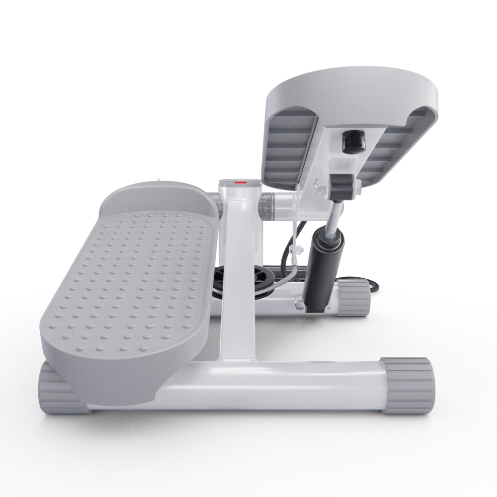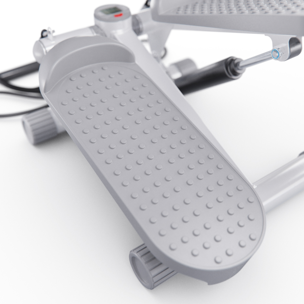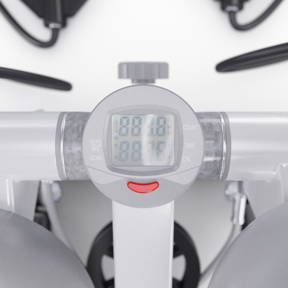 Министеппер DFC ST4W белого цвета — идеальный выбор для домашних тренировок! Это компактный, но функциональный тренажёр, оснащенный двумя эспандерами длиной 88 см для дополнительной нагрузки на руки и плечи. Дополнительно в комплекте сразу идет бутылочка со смазкой. Степпер способен выдержать пользователя весом до 100 кг и имеет компактные размеры 33,5 х 29 х 19 см. Гидравлическая система обеспечивает плавное и последовательное движение, а благодаря механической регулировке вы сможете настроить уровень сложности под свои потребности. Педали степпера имеют размеры 31 х 12 см, а благодаря ручке на раме тренажёра вы можете регулировать высоту их подъёма от 8 до 30 см, выбирая оптимальный уровень нагрузки. Чем выше поднимаются педали, тем больше усилий вам нужно прилагать, и наоборот. В комплекте с мини степпером идут съёмные эспандеры и инструменты для сборки и обслуживания. LCD дисплей степера показывает время, количество сожженных калорий, количество шагов, количество шагов в минуту и режим сканирования, делая ваши тренировки универсальными. Степпер тренажер идеален для дома и особенно подходит для тех, кто ведёт малоподвижный образ жизни или хочет поддерживать хорошую физическую форму без интенсивных занятий в спортзале. Министеппер DFC ST4W отлично подойдёт для похудения, помогает укрепить мышцы ног, ягодиц, спины, рук и плеч, улучшить координацию движений и общую выносливость организма.
