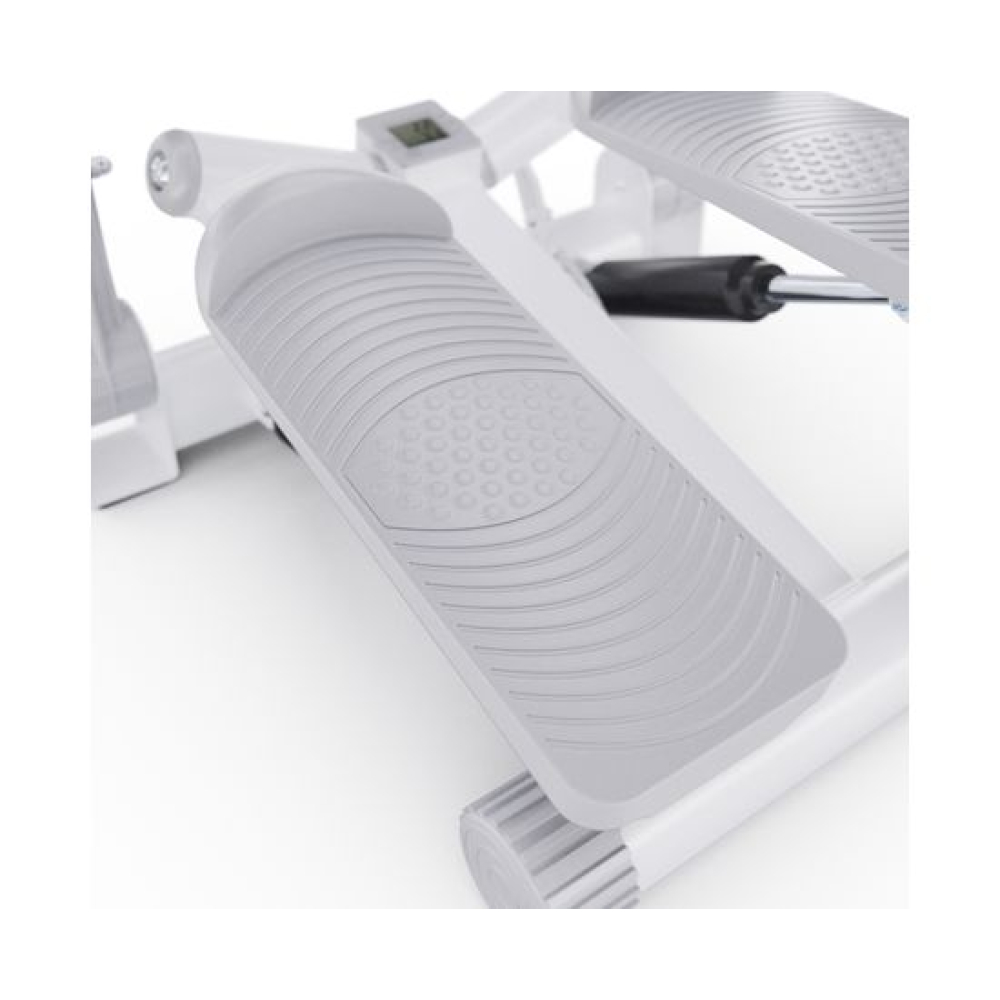 Министеппер DFC SC-S085GG с прямыми поручнями — это компактный и удобный тренажёр для домашних тренировок. Он предназначен для пользователей весом до 100 кг и оснащён монохромным LCD-дисплеем, показывающим время, калории, количество шагов и шагов в минуту. Батарейка входит в комплект поставки, тип батарейки: LR44.Во время сборки обратите внимание: в комплекте поставляется 4 перекладины от поручней - верхняя и нижняя. Чтобы соединить нижнюю и среднюю перекладины, среднюю нужно выкрутить из верхней как показано на рисунке в инструкции. Система нагрузки гидравлическая, с взаимозависимым ходом педалей, что обеспечивает равномерное распределение нагрузки на ноги. Регулировка нагрузки механическая, осуществляется поворотом ручки регулятора. Расстояние между поручнями составляет 45,4 см.Занятия на степпере полезны для укрепления сердечно-сосудистой системы, развития дыхания и координации движений. Также они помогают сжигать калории, повышать выносливость и улучшать общее физическое состояние.