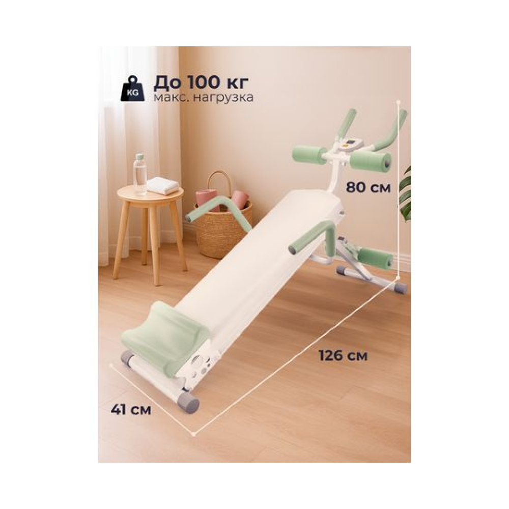 Многофункциональная скамья для пресса DFC KR-1005G — это универсальный тренажер для эффективной проработки мышц живота, ног, ягодиц и верхней части тела. Идеально подходит для домашних тренировок, позволяя достигать профессиональных результатов без посещения спортзала. Благодаря складной конструкции и компактным размерам, ее легко хранить даже в небольшой квартире.Скамья для пресса отличается прочной конструкцией и выдерживает нагрузку до 100 кг. Размер в рабочем состоянии — 126 х 41 х 80 см, в сложенном — 145 х 63 х 51 см. Компенсаторы неровности пола обеспечивают устойчивость даже на неровной поверхности. Тренажер легко складывается и перемещается вручную.Скамья оснащена просторной U-образной подвижной платформой (28 х 18 х 5,3 см) с двойными направляющими и эргономичной подушкой для коленей, которая обеспечивает устойчивость и комфорт во время занятий. Высота регулируется на 3 уровня, что позволяет адаптировать сложность тренировки под уровень подготовки пользователя — от новичка до опытного спортсмена.Для отслеживания результатов тренировок скамья оборудована встроенным монохромным LCD-дисплеем. Он отображает ключевые параметры: время тренировки, количество повторений, количество сожжённых калорий и частоту движений в минуту. Питание от 1 батарейки AAA (входит в комплект).Тренажер позволяет выполнять широкий комплекс упражнений: подъемы корпуса со слайдером, отжимания, подтягивания коленей, скрещивание и подъемы ног, а также проработку боковых мышц живота. Это отличное решение для тех, кто хочет укрепить абдоминальные мышцы, улучшить осанку, избавиться от болей в спине и сформировать сильный мышечный корсет. Регулярные занятия на скамье спортивной способствуют укреплению мышц, сжиганию калорий и улучшению общей физической формы. Это отличный способ поддерживать здоровье, повысить спортивную выносливость и получить красивую фигуру в комфортных домашних условиях.
