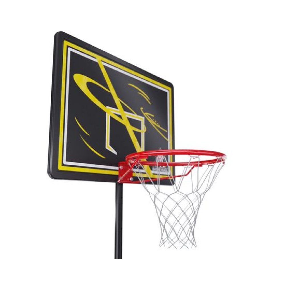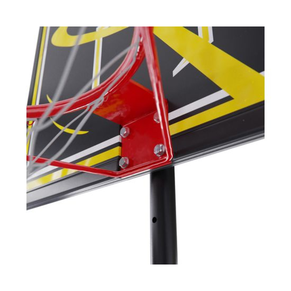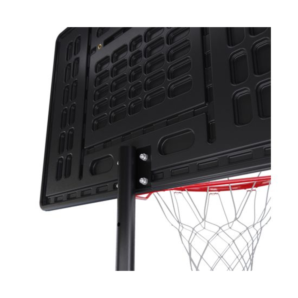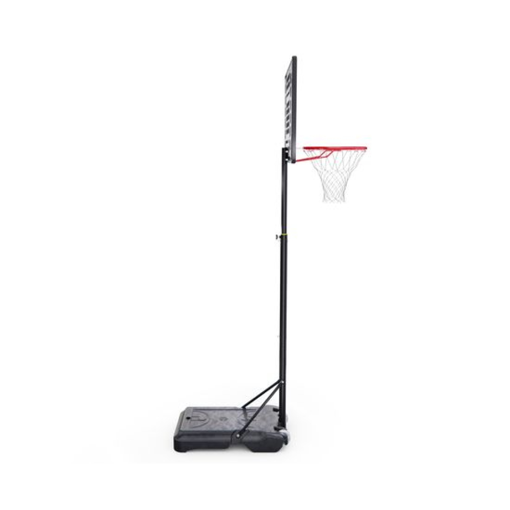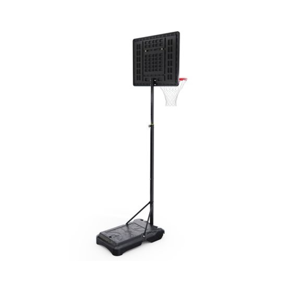 Детская мобильная стойка для игры в баскетбол с щитом из полиэтилена. Для установки в помещении и на улице.В основание размером 75 х 45 х 13 см необходимо залить воду или засыпать песок объёмом 0,043 м3 (43 литра).Телескопическая регулировка высоты от 165 до 210 см (по кольцу). Диаметр стойки (трубы, на которую крепятся щит и основание) - 4,5 см.Баскетбольное кольцо 38 см, цвет оранжевый. Всепогодная нейлоновая сетка в комплекте