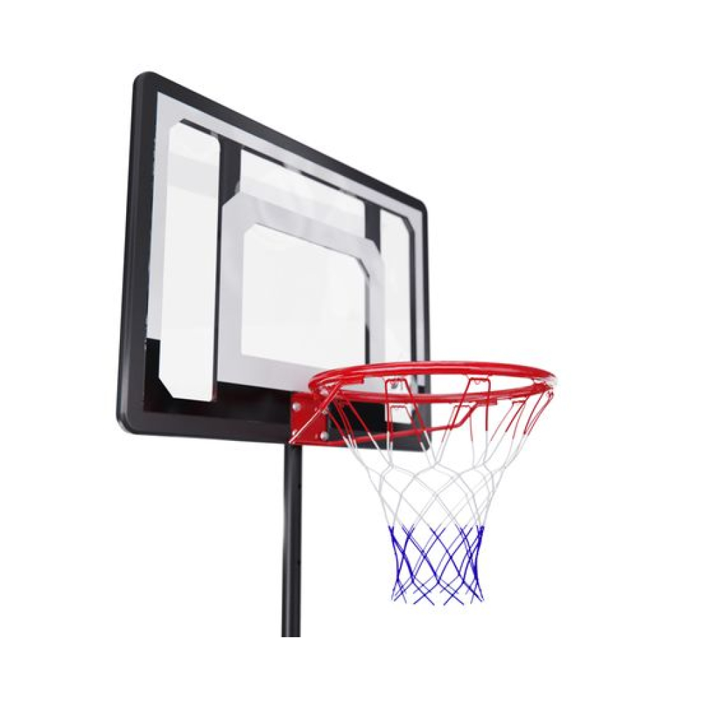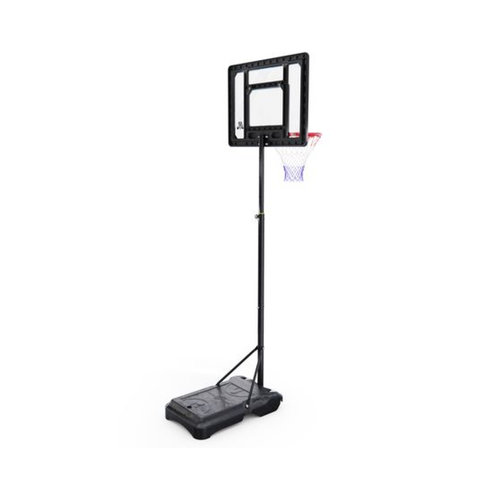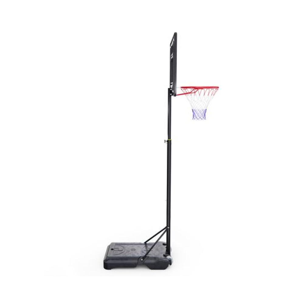 Мобильная баскетбольная стойка DFC KIDSEДетская мобильная баскетбольная стойка с щитом из ПВХ. В основание размерами 75 х 45 х 13 см необходимо залить воду или засыпать песок объёмом 0,043 м3 (43 л).Телескопическая регулировка высоты от 165 до 210 см (по кольцу). Диаметр стойки (трубы, к которой крепится щит и основание) - 4,5 см.Кольцо Ø38 см, цвет оранжевый. Изготовлено из полой металлической трубки Ø11 мм.Всепогодная нейлоновая сетка в комплекте.