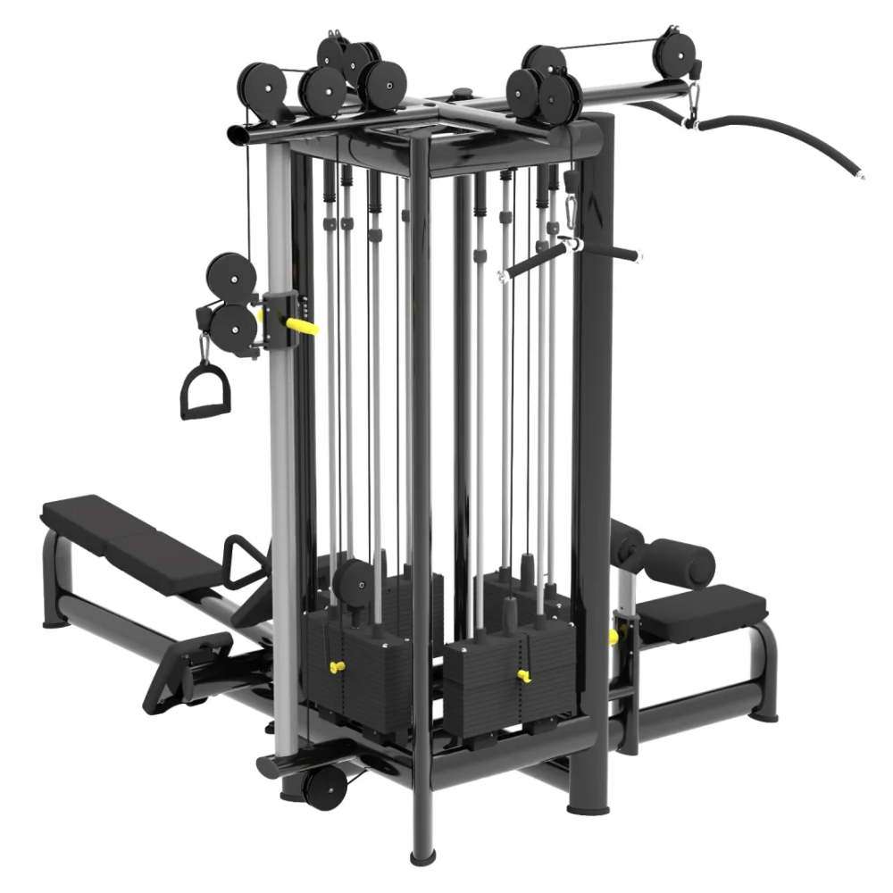 BRONZE GYM MIGHT 61 — профессиональная мультистанция, сочетающая в себе четыре полноценных рабочих позиции. Идеальное решение для коммерческого зала с высокой проходимостью. Конструкция обеспечивает многофункциональность, компактное размещение и комфорт при выполнении ключевых тяг на спину и функциональных упражнений.