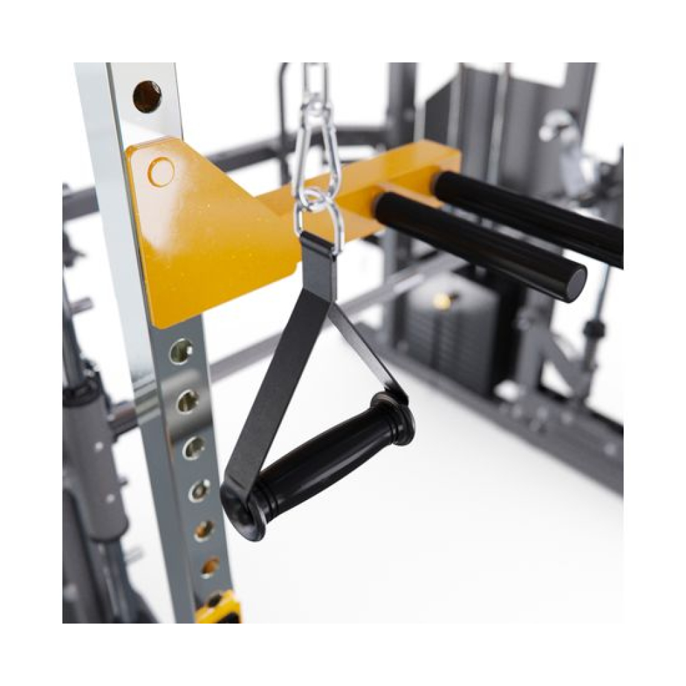 Мультистанция STONERISE DSM834 - это профессиональное силовое оборудование, предназначенное для качественного и эффективного тренинга всех групп мышц тела. Благодаря широкому спектру аксессуаров, входящих в комплект, пользователь получает возможность выполнять различные упражнения, направленные на развитие силы, выносливости и гибкости. Максимальная нагрузка составляет 250 кг.Основные преимущества мультистанции STONERISE включают: Универсальность: благодаря наличию различных аксессуаров, таких как гриф прямой, турник W-образный, канат для трицепсов, многофункциональные Y-образные рукоятки, перекладина для гребли сидя, турник, ремешок на щиколотку, амортизатор для штанги, Т-образный турник, лэндмайн, нескользящая металлическая платформа для ног и брусья, пользователь может проработать все основные группы мышц своего тела. Надежность и безопасность: конструкция мультистанции изготовлена из высококачественной стали, что обеспечивает долговечность и устойчивость оборудования. Мягкие неопреновые ручки делают использование оборудования более комфортным и безопасным. Регулировки: мультистанцию можно регулировать по высоте, что позволяет каждому пользователю настроить оборудование под свои индивидуальные параметры. Простота использования: благодаря наглядной и понятной инструкции, любой пользователь сможет быстро освоить и начать использовать DSM834.