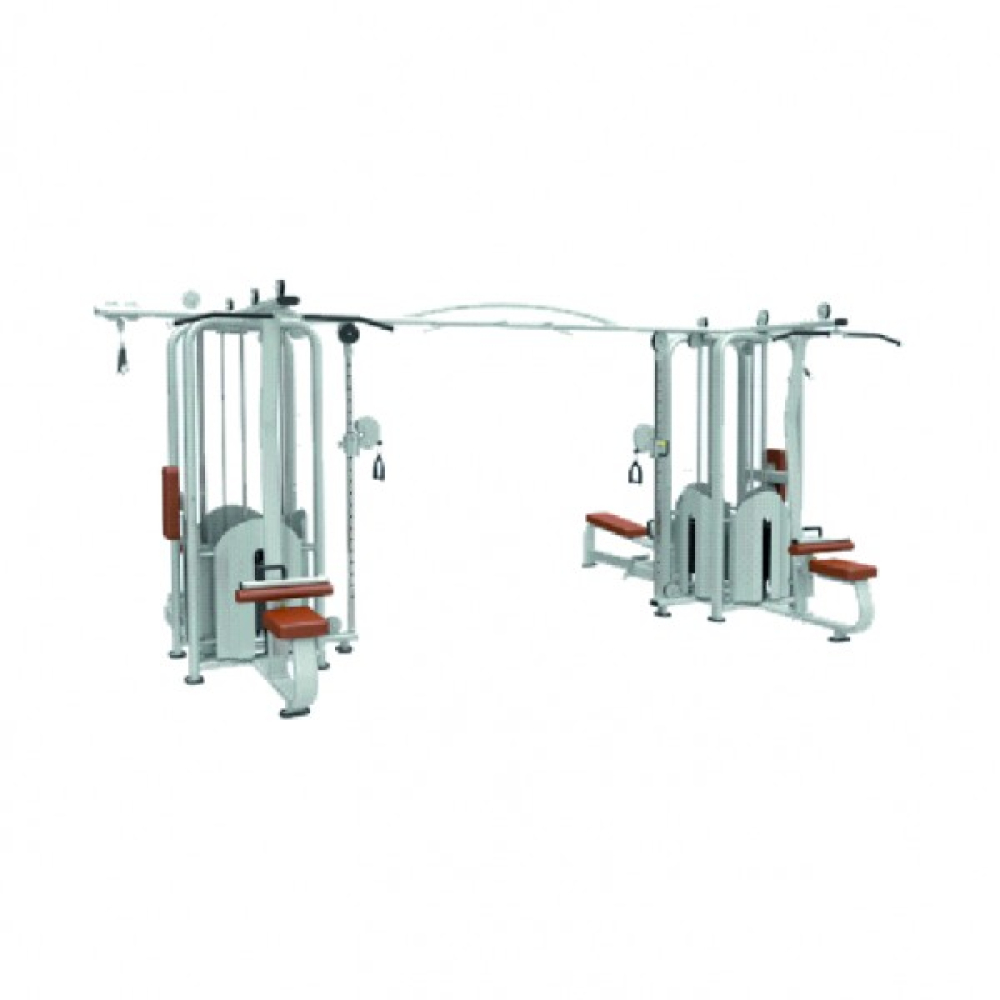 Профессиональная мультистанция на 8 мест UG-IN872 – инновационное оборудование для оснащения тренажерных залов с высокой пропускной способностью необходимое для удовлетворения потребностей спортсменов в силовых тренировках направленных на проработку всех основных групп мышц.Мультистанция дает возможность осуществлять эффективные изолированные тренировки сразу нескольким пользователям независимо друг от друга, а также является незаменимым помощником для тренеров проводящих тренировки в групповом или индивидуальном порядке.Биомеханика и эргономика тренажера обеспечивают максимальную безопасность пользователей, а также способствуют формированию естественных, анатомически правильных движений направленных на целевую проработку задействованных групп мышц.Современные высокопрочные материалы, использованные при производстве мультистанции UG-IN872 гарантируют длительный срок эксплуатации оборудования и повышенную устойчивость к интенсивным нагрузкам.Профессиональный силовой тренажер подходит для активных тренировок пользователей любого уровня подготовки, способствует повышению выносливости, формированию красивого рельефа и эффективной проработке всех основных групп мышц.Нагрузка при выполнении упражнений создается с помощью грузоблоков и равномерно распределяется на целевые группы мышц, обеспечивая технически грамотное выполнение упражнений, способствующее скорейшему достижению результата. Для устранения скольжения и увеличения устойчивости тренажер имеет резиновые подпятники.Профессиональная мультистанция на 8 мест UG-IN872 – это комплексное силовое оборудование, способное удовлетворить требования спортсменов в высокоэффективных и безопасных тренировках.