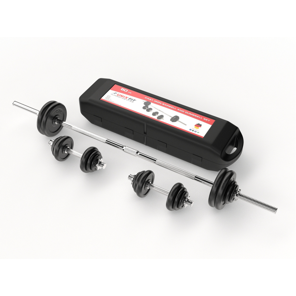 Набор гантелей и штанга UNIX Fit в кейсе 50 кг