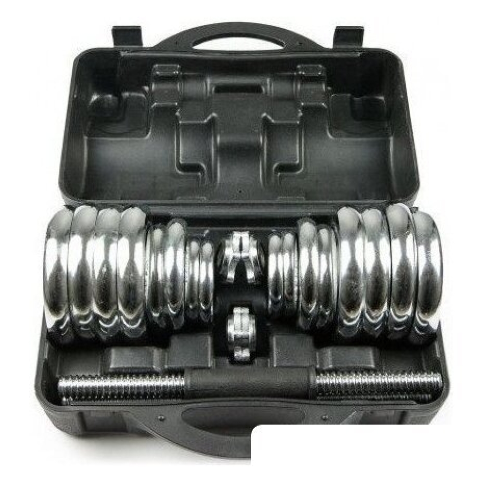 Технические характеристики Набор гантелей с соединительным грифом Atlas Sport хромированных в чемодане 20 кг (2x10 кг)