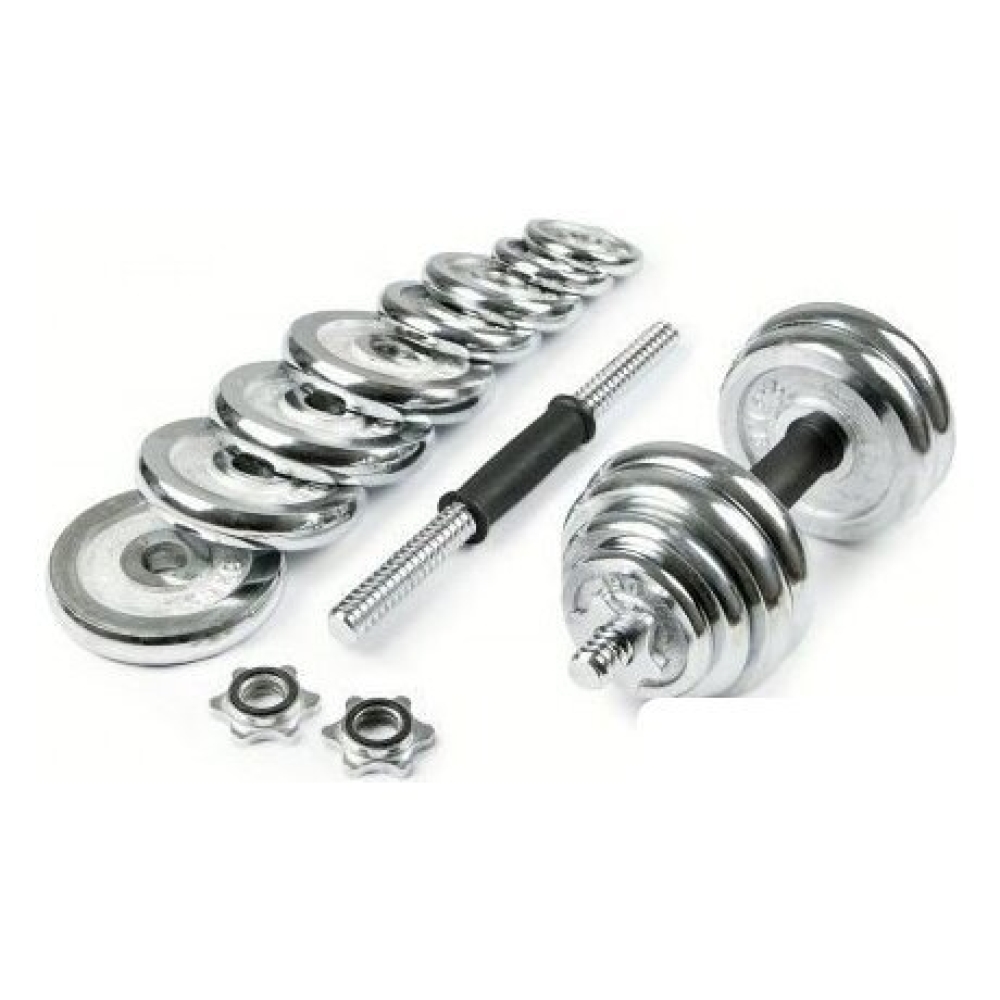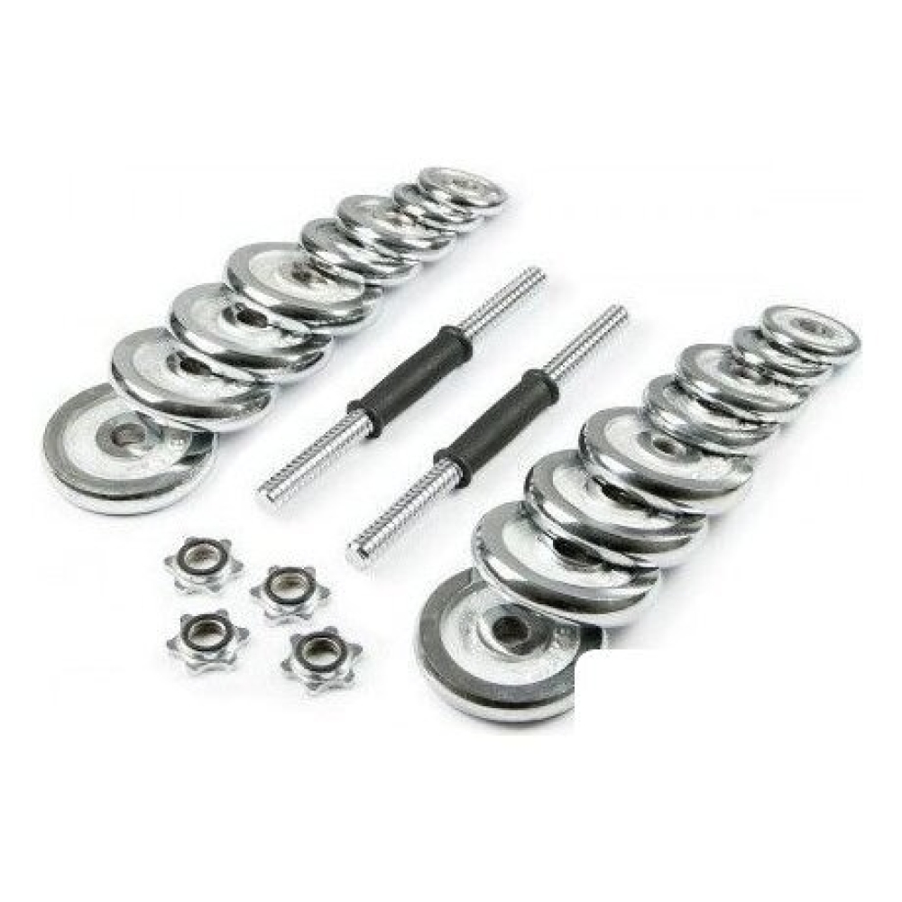 | Комплектация | - 2 грифа диаметром 26 мм, длиной 35 см (длина резьбы 11 см с каждой стороны) и весом 1,35 кг- 4 зажима, которые обеспечивают точные нагрузки давления- 4 диска х 0,5 кг (диаметр 9,5 см, ширина 1,4 см)- 4 диска х 1,25 кг (диаметр 11 см, ширина 1,8 см)- 4 диска х 2,5 кг (диаметр 15 см, ширина 2,2 см)- 1 соединительный гриф |