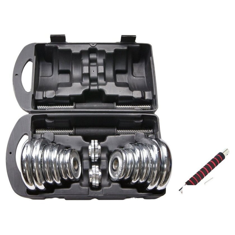 Набор гантелей с соединительным грифом Atlas Sport хромированных в чемодане 20 кг (2x10 кг)