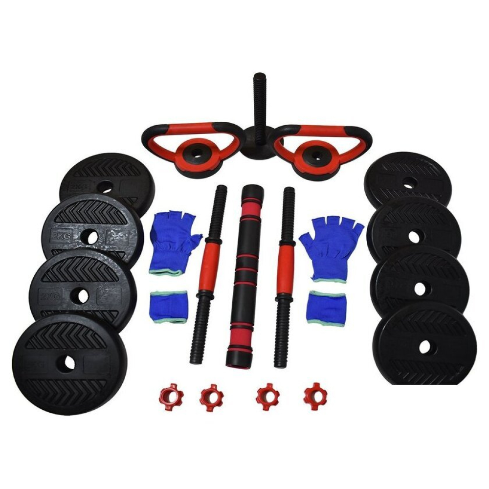 | Комплектация | 8 дисков: 4 шт - 1,5 кг; 4 шт - 2 кг2 грифа для гантелей 2 ручки для гирь и грифа1 соединительный гриф4 замка Перчатки (пара) и резинки на запястье |