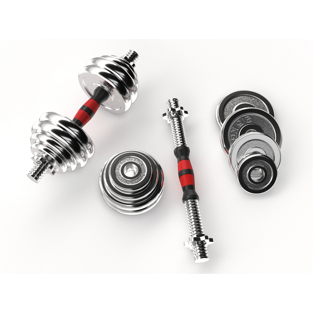 Набор состоит из двух гантелей общим весом 30 кг. Удобная разборная конструкция позволяет регулировать вес гантелей в процессе занятий, а эргономичная рукоятка сделает тренировку комфортной. В комплект входит компактный кейс для хранения и транспортировки гантелей. Вес дисков и их количество: 8 дисков по 2.5 кг , 4 диска по 1.25 кг , 4 диска по 0.5 кг. Вес грифов: 2 грифа по 1 кг, + 4 гайки по 250 грамм. Длина посадочного штыря под диски составляет 12.5 см. Длина грифов - 37.5 см. Ширина хвата - 12.5 см. Диаметр посадочного штыря под диски составляет 2.5 см. Установка всех дисков одновременно на один гриф - недопустима.