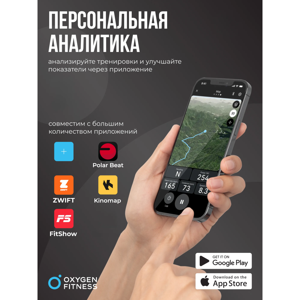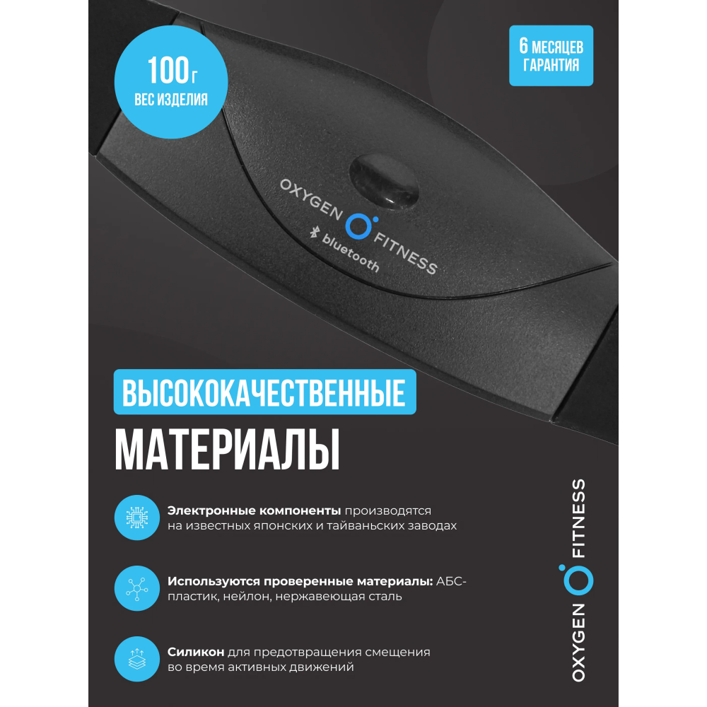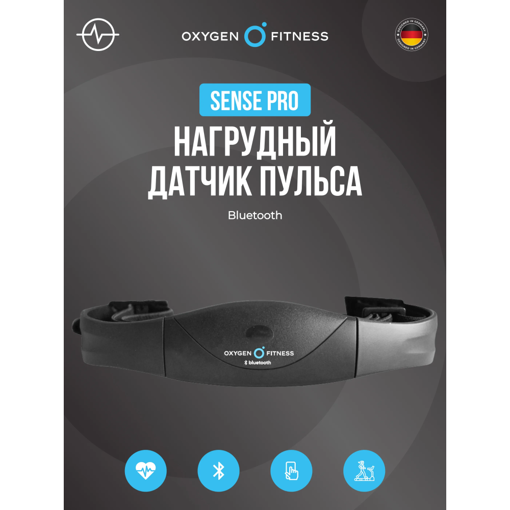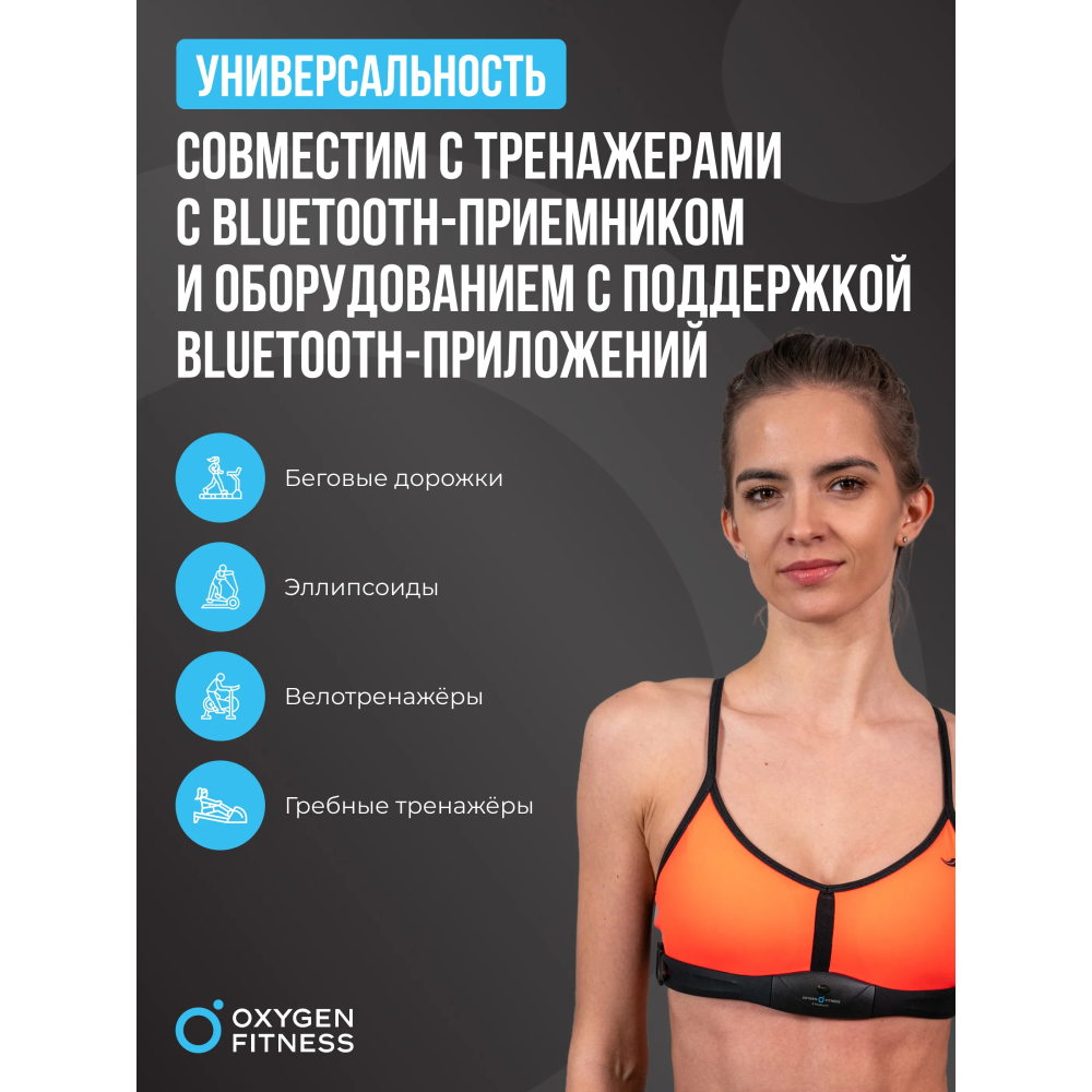 • Нагрудный датчик пульса OXYGEN FITNESS SENSE PRO (Bluetooth) совместим с приложением Wahoo Fitness и со всеми кардиотренажерами, имеющими Bluetooth-приемник