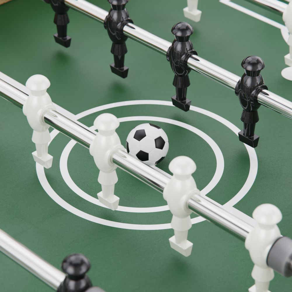 Игровой стол-футбол (кикер) DFC UY10096 — удобная модель для домашнего использования. Подойдёт для детей и взрослых и станет отличным решением для квартиры, детской комнаты или игровой зоны. Корпус стола выполнен из прочного МДФ, что обеспечивает надёжность и устойчивость конструкции при регулярной эксплуатации. Толщина игрового поля составляет 5 мм, благодаря чему поверхность остаётся ровной и обеспечивает плавное движение мяча во время игры. Высота бортиков от игрового поля составляет 102 мм, а их толщина — 12 мм, что придаёт конструкции устойчивость при активной игре. Ножки высотой 69 см обеспечивают комфортное положение игроков. Стол оснащён компенсаторами неровности пола, которые помогают установить его устойчиво даже на не идеально ровной поверхности. В комплект входят 2 мяча диаметром 36 мм, поэтому можно начать игру сразу после сборки. Игровой стол-футбол DFC UY10096 — практичный и функциональный вариант для активного отдыха дома, который сделает досуг более динамичным и увлекательным. Гарантия на детали подверженные естественному износу в процессе эксплуатации — до 6 месяцев с момента установки тренажера при условии регулярного планового ТО. Важно: гарантия не распространяется на преждевременный износ из-за чрезмерной эксплуатации тренажера.