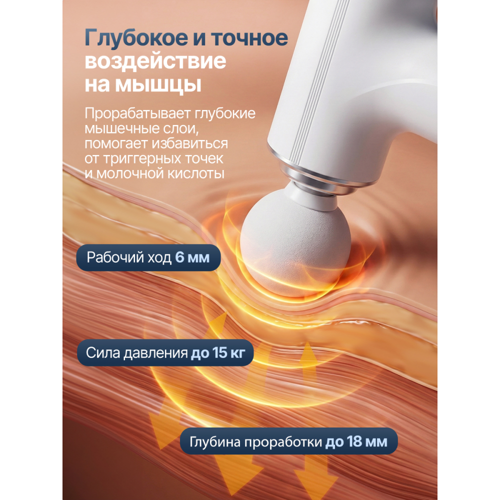 Перкуссионный массажер для тела, шеи и спины DFC YESOUL VM-MG3 — это современное устройство для эффективного расслабления и восстановления мышц в домашних условиях. Он идеально подходит для использования после рабочего дня или длительных прогулок, помогая снять усталость и улучшить кровообращение. Модель работает от встроенного аккумулятора ёмкостью 2400 мА•ч, обеспечивающего длительное использование без подзарядки. Это значит, что устройство не требует постоянного подключения к сети и может использоваться где угодно — дома, в офисе или в поездке. Зарядка происходит через современный разъём Type-C. Устройство с шестью уровнями регулировки интенсивности позволяет подобрать оптимальный режим массажа для каждой зоны тела и любой степени нагрузки. Рабочий ход составляет 6 мм, что обеспечивает глубокое и точное воздействие на мышцы, а скорость вращения варьируется от 1600 до 4200 ударов в минуту, позволяя выбрать как мягкий расслабляющий, так и интенсивный восстанавливающий режим. Переключатель уровней интенсивности делает управление простым и удобным. В комплект входят 4 сменные насадки, каждая из которых предназначена для разных зон тела. Шарикообразная насадка подходит для крупных мышц спины и бёдер, U-образная — для шеи и позвоночной зоны, A-образная — для точечного массажа и глубоких мышц, а маленькая плоская насадка — для мягкого массажа рук, ног и поясницы. Прочный и безопасный корпус из АБС-пластика устойчив к износу и приятен на ощупь, а продуманный эргономичный дизайн и простое управление делают использование устройства максимально комфортным и эффективным в любое время. Перкуссионный массажер для тела, шеи и спины DFC YESOUL VM-MG3 — это интеллектуальный массажер нового поколения, созданный для комфортного восстановления и расслабления тела. Используя его регулярно, вы сможете поддерживать мышцы в тонусе, ускорить восстановление после тренировок и наслаждаться ощущением комфорта в любое время. Гарантия на детали подверженные естественному износу в процессе эксплуатации — до 6 месяцев с момента установки тренажера при условии регулярного планового ТО. Важно: гарантия не распространяется на преждевременный износ из-за чрезмерной эксплуатации тренажера.
