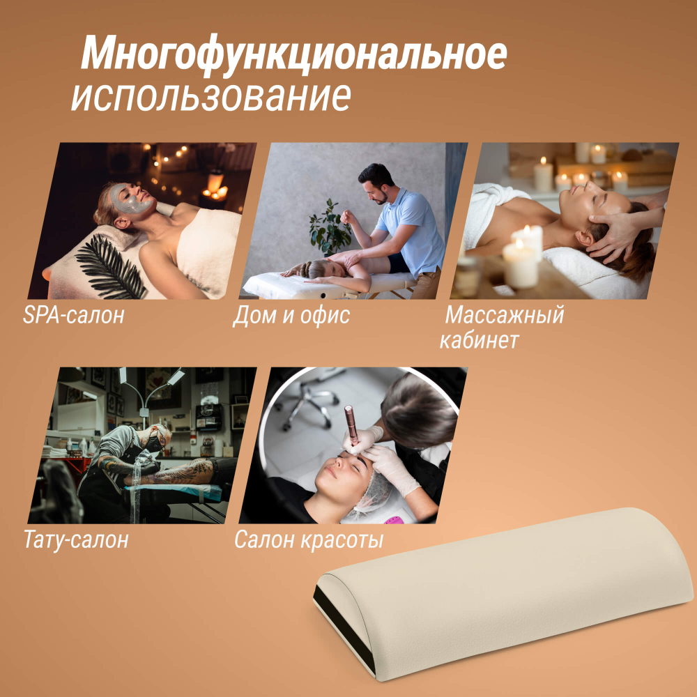 Полувалик для массажного стола UNIX размером 70x16x8 см предназначен для использования как в профессиональных массажных кабинетах, салонах, так и в домашних условиях. Экокожа, используемая для обивки, обладает высокой прочностью и устойчивостью к различным видам загрязнений. Она обеспечивает долговечность изделия, а также защиту от влаги, что особенно важно в условиях профессионального использования. В отличие от натуральной кожи, эко-кожа не требует сложного ухода и сохраняет свой первоначальный вид даже при интенсивной эксплуатации. Внутри валика для массажного кабинета находится эластичный поролон, который придает ему необходимую упругость и комфорт. Поролон равномерно распределяет нагрузку, поддерживая различные части тела — шею, спину, поясницу или ноги. Благодаря этому материалу, валик прекрасно адаптируется под индивидуальные анатомические особенности каждого клиента, создавая ощущение максимального удобства и релаксации во время процедур. Одним из ключевых преимуществ данного полувалика является наличие съемного чехла. Это решение значительно упрощает уход за изделием: чехол можно легко снять и почистить, что помогает поддерживать высокий уровень гигиены. Такая функция особенно важна в условиях массажного кабинета, салона красоты, где чистота и безопасность клиентов стоят на первом месте. Для облегчения переноски валик оснащен широкой удобной ручкой, интегрированной непосредственно в его конструкцию. Эта деталь делает транспортировку простой и комфортной, позволяя перемещать данный аксессуар без особых усилий. Вес изделия составляет всего 300 грамм. Массажный полувалик UNIX обладает широкими возможностями применения. Он будет полезен в различных сферах: - СПА-салоны: создание атмосферы комфорта и релаксации. - Салоны красоты: дополнительное удобство для клиентов во время косметических процедур (шугаринг, наращивание ресниц, татуаж и другие уходовые процессы) - Тату - студии: обеспечение комфорта клиентам во время длительных сеансов татуировки. - Домашние условия: помощь в снятии мышечного напряжения и улучшение общего самочувствия. Средняя жесткость валика делает его подходящим как для опытных специалистов, так и для новичков, стремящихся освоить основы массажа. Полувалик на кушетку UNIX обеспечит оптимальную поддержку и расслабление мышц, создавая идеальные условия для проведения массажа. Этот универсальный аксессуар незаменим как в профессиональной деятельности, так и в повседневной жизни, помогая вам заботиться о своем здоровье и комфорте. Расслабляйтесь вместе c UNIX!
