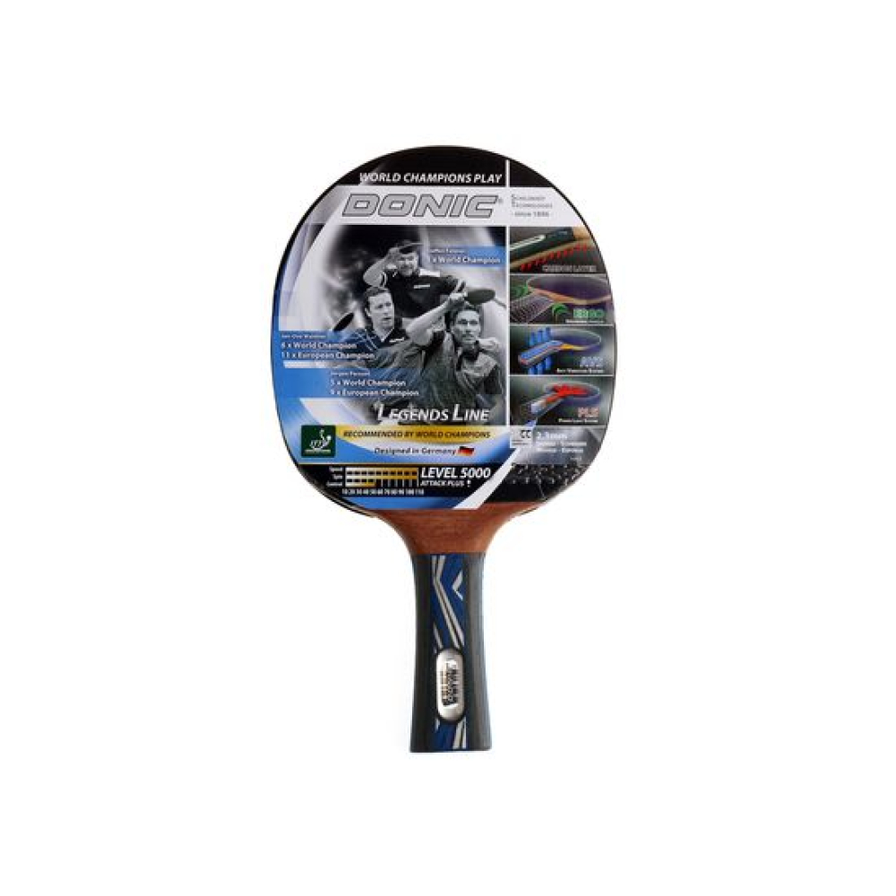 Ракетка DONIC "LEGENDS 5000" рассчитана на тип игры Атака+. Для покрытия используется накладка Liga, а толщина губки 2,3 мм. Ракетка одобрена Международной федерацией настольного тенниса ITTF. AVSAnti-Vibration-System (AVS) — это амортизирующая система, разработанная Schildkröt. Благодаря AVS улучшается контроль мячика и снижаются вибрации, вызванные энергией удара. Два амортизирующих мягких слоя находятся между ручкой и её покрытием. В результате AVS повышает точность ударов как в оборонительном, так и в наступательном стиле игры.PLSPower Light System (PLS) - это система, снижающая общий вес рукоятки и переносящая центр тяжести на центральную часть благодаря полой конструкции. Таким образом, во время игры ваши удары будут гораздо быстрее и мощнее, а ощущение усталости придёт гораздо позже.ERGOРучка ERGO (эргономичная) анатомически точно прилегает к руке и помогает игроку чувствовать себя с ракеткой единым целым! Закругленная форма ручки позволяет избежать давления в руке и делает процесс игры более приятным и комфортным. Carbon LayerКарбоновый слой в основании рукоятки делает ракетку жёстче и увеличивает зону восприятия. Ракетки из карбона производят меньше вибраций и повышают базовую скорость. Благодаря этому, создаётся более жёсткое и прямое ощущение удара, в результате - высокая мощность и точность. Отлично подойдёт для атакующих игроков с высокими требованиями.LigaУниверсальная резиновая накладка Liga создана по технологии SR (Starter Technology) из каучука. Она достаточно цепкая, что увеличивает контроль над мячиком во время игры, а также долговечная из-за прочности материала. Благодаря этим свойствам вы сможете играть как в атакующей позиции, так и в защитной.