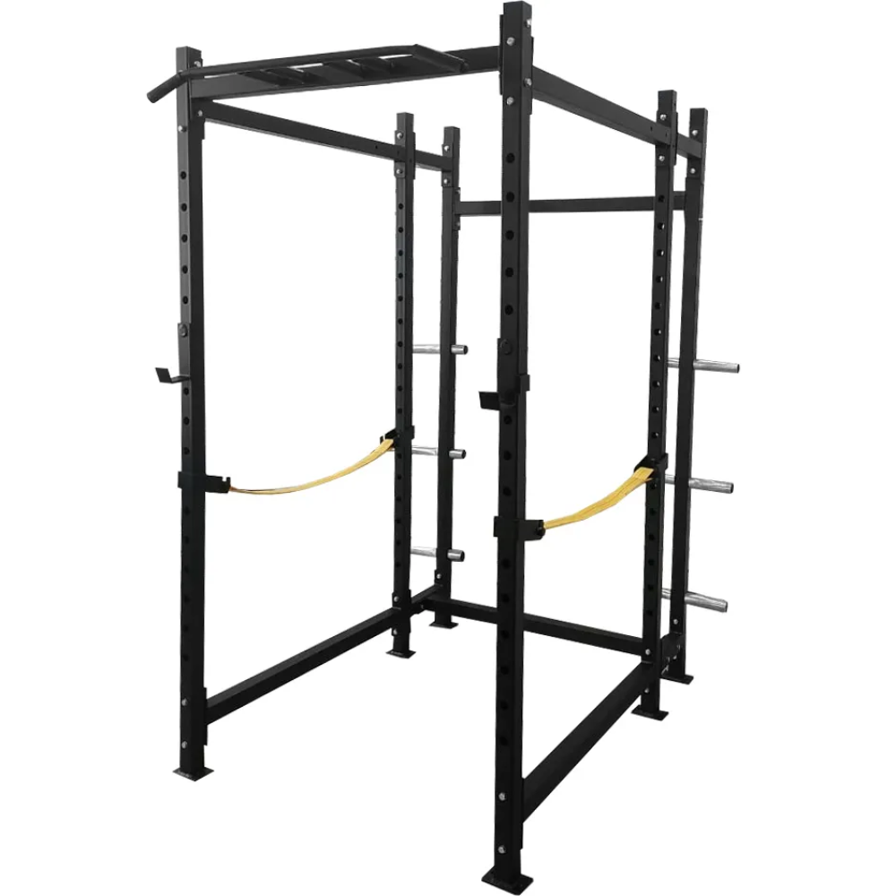Силовая рама для приседаний AL-315 от BRONZE GYM имеет надежную и прочную конструкцию, которая включает в себя страховочные ограничители и съемные крюки для грифа. Также, для занятий без штанги предусмотрены турники с многопозиционными хватами и зацепы для подтягиваний. Изделие подходит для пользователей различного роста и телосложения. На задних стойках рамы расположены 6 держателей для стандартных олимпийских дисков. Рама для приседов с профилем основной станины 60*60*3 мм. для полноценного коммерческого использования.