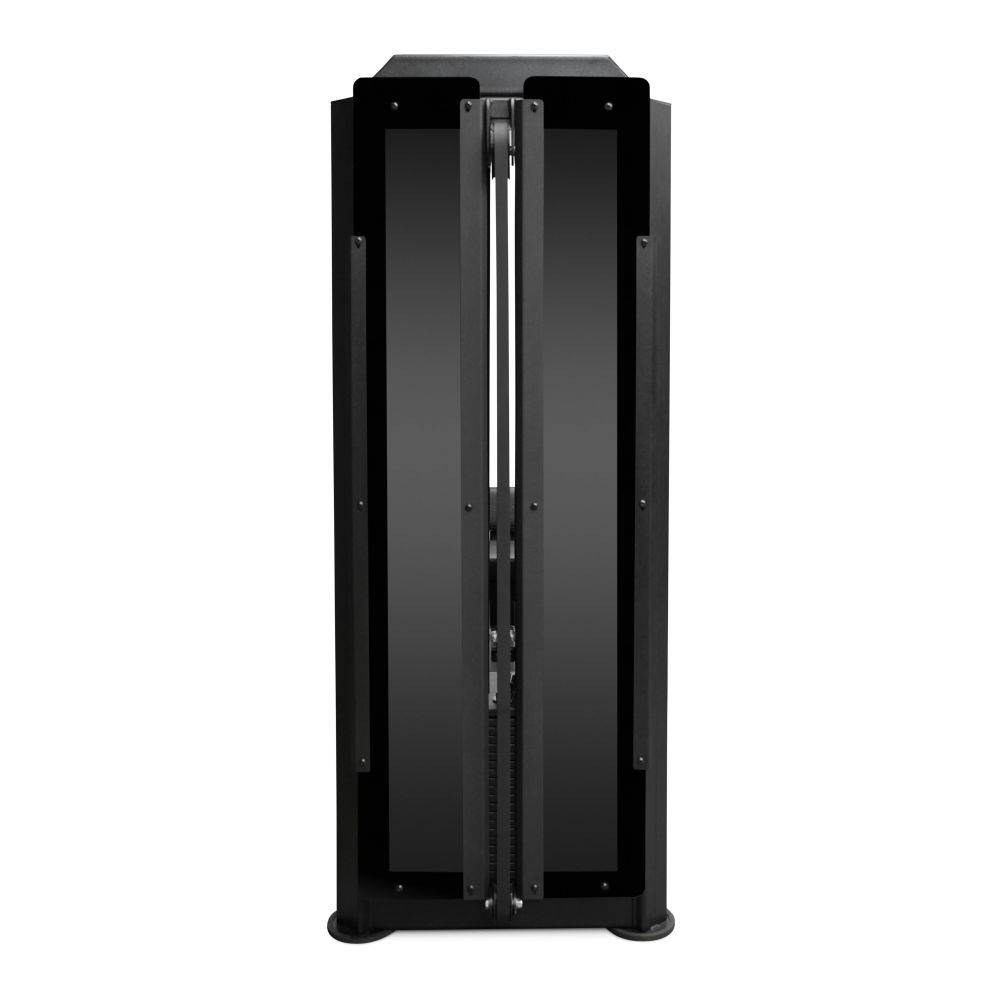 Нагрузка осуществляется с помощью стальных плит. Выбор рабочего веса осуществляется с помощью стального фиксатора. Круглые резиновые подпятники, закрепленные на ножках, снижают вибрации в процессе тренировки и гарантируют хорошую устойчивость тренажера и отличное сцепление с полом.