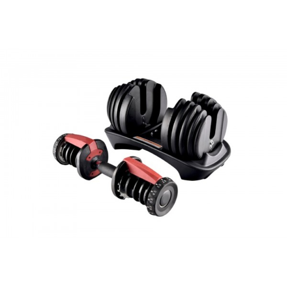 Система, используемая в гантелях, существенно снижает затраты времени на формирование нагрузки и позволяет сэкономить свободное пространство в помещении. В комплекте имеется подставка-поддон для хранения.
