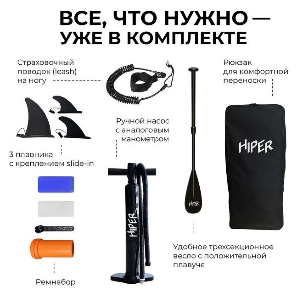 | Комплектация | доска, насос, весло, плавник, ремкомплект, страховочный лиш, сумка |