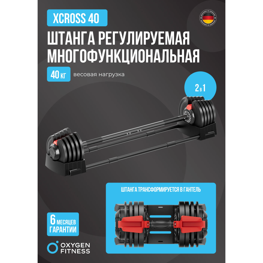 Технические характеристики Штанга регулируемая многофункциональная 2 в 1 OXYGEN FITNESS XCROSS 40 кг