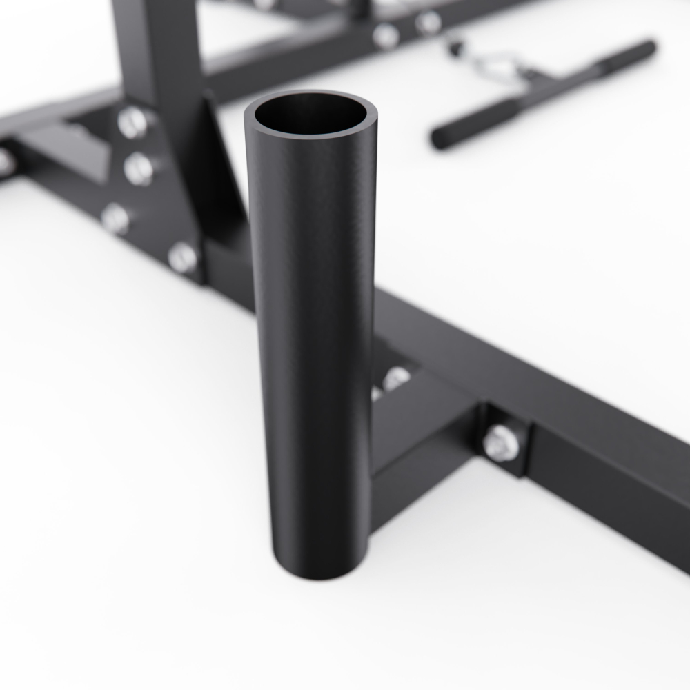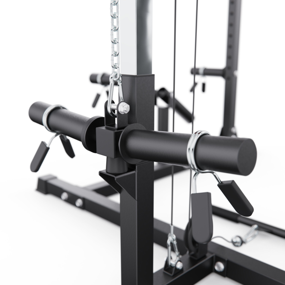 Силовая рама DFC Fitness Reality 2822 — идеальный тренажер для комплексной проработки мышц всего тела в домашних условиях. С его помощью эффективно тренируются грудные мышцы, спина, плечи, бицепсы и трицепсы, а также мышцы ног и кора при выполнении приседаний и упражнений с собственным весом. Максимальная статичная нагрузка составляет до 250 кг, что делает тренажёр подходящим для большинства пользователей. Конструкция оснащена грузовой трубой для установки весовых дисков, а также регулируемой рамой, позволяющей адаптировать тренажёр под рост и формат тренировок. Держатели штанги и страховочные элементы обеспечивают безопасное выполнение базовых силовых упражнений с контролем техники. Рама выполнена из прочного стального профиля 50 х 50 х 1,5 мм, что обеспечивает надёжность и устойчивость конструкции. Посадочный диаметр — 50 мм, а количество посадочных мест — 6, что позволяет комфортно размещать и хранить диски + пружинные зажимы в комплекте. Максимальная нагрузка на держатель штанги и страховочную трубу составляет 100 кг, а на грузовую трубу — 50 кг, позволяя постепенно увеличивать рабочие веса. Конструкция оснащена верхним и нижним тросом, что значительно расширяет возможности тренировок. Верхний трос подходит для выполнения упражнений на спину, плечи и руки, включая различные варианты тяг. Нижний трос можно использовать для упражнений на руки и ноги, что позволяет варьировать нагрузку и адаптировать тренировки под индивидуальные цели. В нижней части рамы предусмотрено отверстие для выполнения жима в стиле лэндмайн, расширяющего возможности тренировок плеч и корпуса. Боковые упоры позволяют выполнять отжимания на брусьях, прорабатывая грудные мышцы, трицепсы и плечи. Многопозиционный турник даёт возможность выполнять различные виды подтягиваний, включая широкий, узкий и обратный хват, делая тренажёр универсальным решением для комплексных силовых тренировок всего тела. Силовая рама DFC Fitness Reality 2822 — это функциональный и универсальный тренажер, который позволяет выполнять широкий спектр упражнений для различных групп мышц. Гарантия на детали подверженные естественному износу в процессе эксплуатации — до 6 месяцев с момента установки тренажера при условии регулярного планового ТО. Важно: гарантия не распространяется на преждевременный износ из-за чрезмерной эксплуатации тренажера.