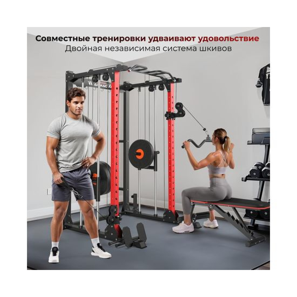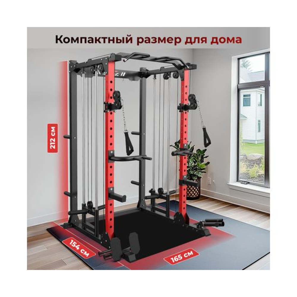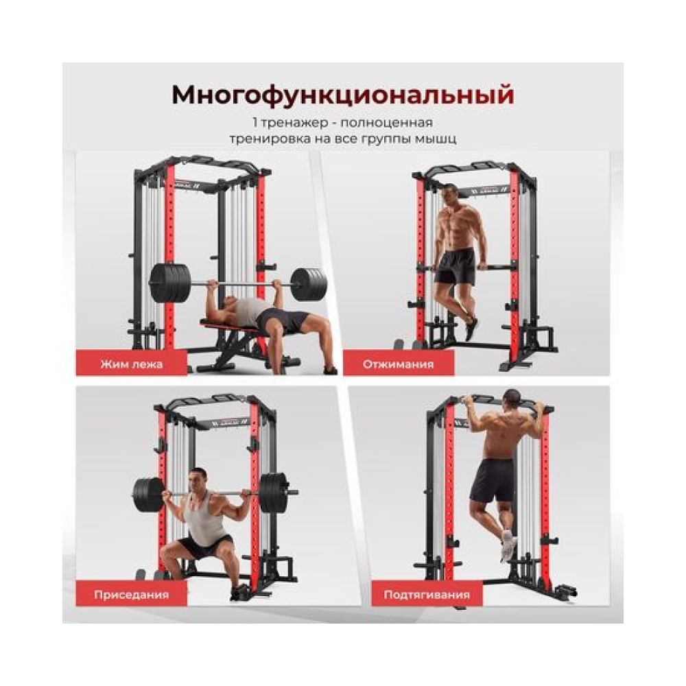 Силовая рама многофункциональная DFC D034 — компактное и удобное решение для домашних тренировок, позволяющее выполнять широкий спектр силовых упражнений, включая подтягивания, отжимания на брусьях, тягу верхнего и нижнего блока. Профиль рамы 50*70*2 мм, Максимальная статическая нагрузка до 800 кг, что обеспечивает безопасную и комфортную эксплуатацию тренажёра для пользователей разного уровня подготовки. Рама имеет прочный профиль и посадочный диаметр, а толщина тросов и рукояти для тяги обеспечивают надёжность и стабильность при выполнении упражнений.Тренажёр компактный и удобный, легко размещается в домашних условиях и не занимает много места. Прочная конструкция и качественные материалы гарантируют долговечность и устойчивость даже при регулярных занятиях.Силовая рама многофункциональная DFC D034 сочетает компактность, эргономичность и многоуровневую регулировку, обеспечивая универсальность использования и возможность адаптации под индивидуальные параметры пользователя. Она идеально подходит для домашних тренировок и позволяет безопасно развивать силу, выносливость и мышечный корсет.Гарантия на детали подверженные естественному износу в процессе эксплуатации — до 6 месяцев с момента установки тренажера при условии регулярного планового ТО. Важно: гарантия не распространяется на преждевременный износ из-за чрезмерной эксплуатации тренажера.