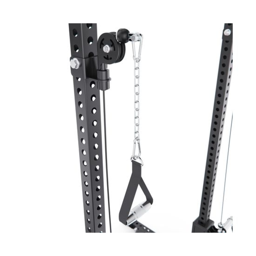 Силовая рама с кроссовером STEELVER SV9206 разработана для домашнего использования и подходит для полноценного силового тренинга.Конструкция рассчитана на максимальную нагрузку до 250 кг, что позволяет безопасно выполнять базовые и изолирующие упражнения. Рама оснащена 4 посадочными местами с посадочным диаметром 28 и 50 мм, обеспечивая совместимость с различными типами весовых дисков.Прочная стальная рама выполнена из профиля 75 х 75 х 3 мм, что гарантирует устойчивость, долговечность и стабильность конструкции. Длина троса составляет 171,8 см, обеспечивая комфортную амплитуду движений при выполнении упражнений. Ширина турника — 108,4 см, что способствует удобному и безопасному хвату при тренировках.Максимальная нагрузка на узел для подвешивания дисков составляет 150 кг. Для надежной фиксации весов предусмотрен пружинный зажим, повышающий безопасность и удобство во время тренировок.Встроенный кроссовер расширяет функциональность тренажера, позволяя прорабатывать все основные группы мышц. Кроме того, с одной стороны рамы предусмотрено специальное отверстие для установки грифа, которое позволяет использовать раму как Лэндмайн, выполняя жим и другие упражнения с естественной амплитудой движения.Гарантия на детали подверженные естественному износу в процессе эксплуатации — до 6 месяцев с момента установки тренажера при условии регулярного планового ТО. Важно: гарантия не распространяется на преждевременный износ из-за чрезмерной эксплуатации тренажера.