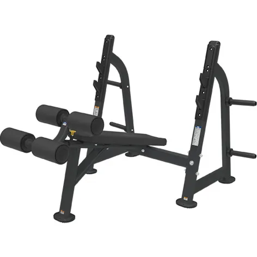 Профессиональные скамьи от немецкого бренда BRONZE GYM — это отличное решение для любых фитнес клубов, небольших корпоративных залов и различных учреждений спортивной направленности. Скамья для жима с отрицательным углом наклона BRONZE GYM BR-1013 из новой линейки оборудования премиум-класса, разработанная для обеспечения максимально качественных тренировок, обеспечивает высокую безопасность и эффективность силовых упражнений со штангой за счет конструктивных особенностей тренажера. Скамья расположена под углом -20°, что обеспечивает максимальную эффективность жимов. Для защиты от царапин и сколов предусмотрено двойное порошковое напыление. Каркас выполнен из толстостенного профиля 50х100 мм полукруглого сечения толщиной 3 мм. Используемые на модели BR-1013 материалы скамьи из пенополиуретана с обивкой из экокожи гарантируют повышенный комфорт на протяжении всего тренировочного процесса.