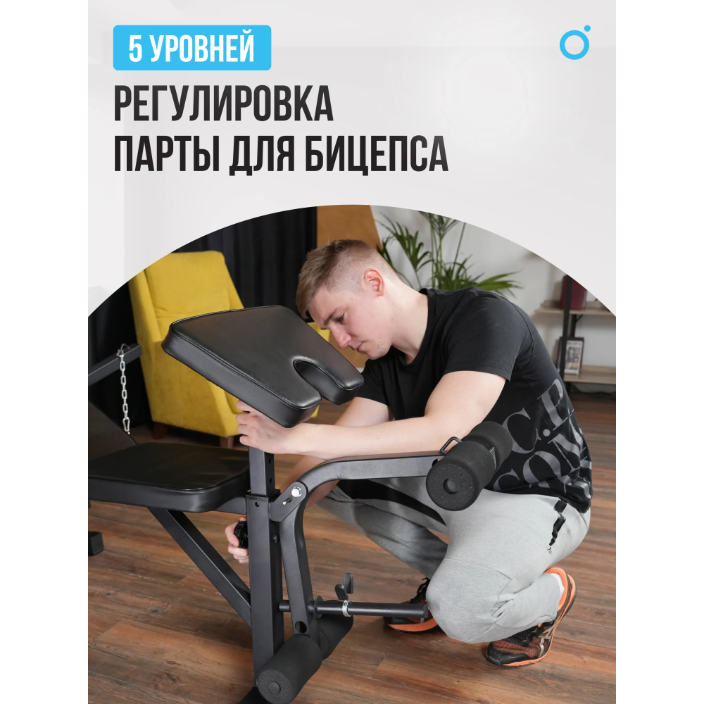 Скамья OXYGEN FITNESS ARIZON оснащена комфортабельным эргономичным сиденьем с обивкой из экокожи толщиной 50 мм, что обеспечивает высокий уровень комфорта во время тренировок. Спинка также регулируется, что позволяет выбрать оптимальное положение для различных упражнений. Скамья предлагает 5 уровней регулировки парты бицепса и 2 уровня регулировки неопренового ролика, что делает ее универсальной для выполнения различных упражнений.