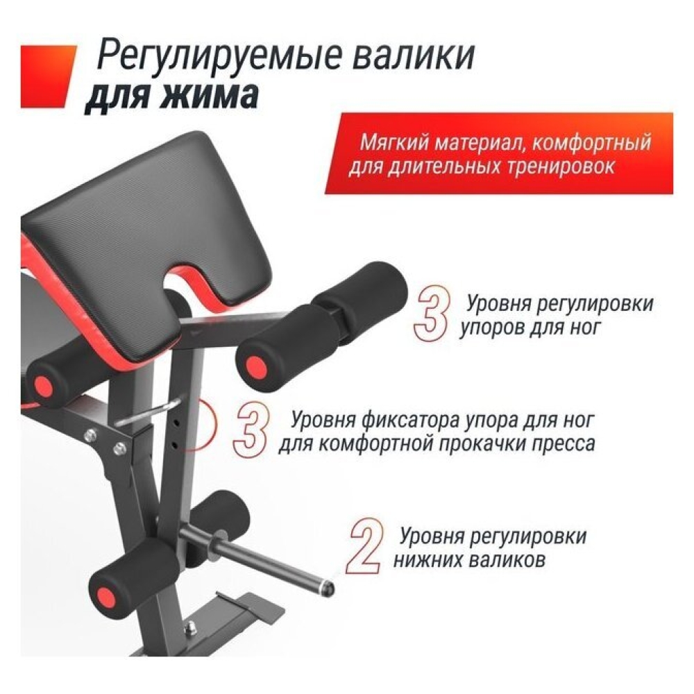 | Конструкция | стойка для штанги, скамья для жима штанги, парта Скотта, скамья для пресса |