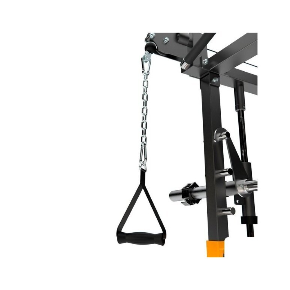 | Комплектация | - 2 ручки для подтягивания на брусьях- держатель для выполнения жима лэндмайн- баттерфляй- J-образные держатели для штанги- 2 ручки на цепях для тяги сверху и снизу- пружинный зажим для регулировки амплитуды движения- ограничители амплитуды движения |