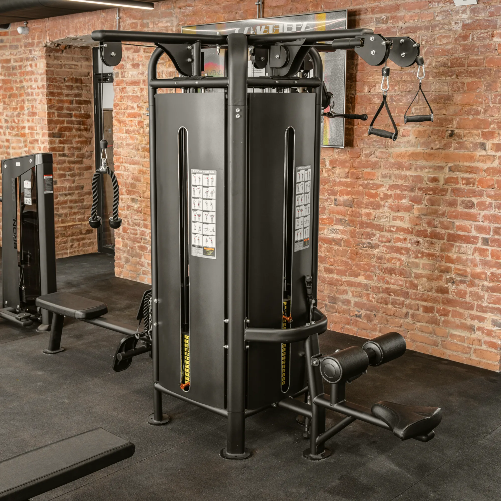 4-ех позиционная профессиональная мультистанция BRONZE GYM MS-1005 – эффективный профессиональный силовой тренажер, предназначенный для коммерческого использования, который позволяет комплексно прорабатывать все тело, обеспечивая отличный уровень атлетической подготовки. Тренажер включает в себя 2 станции для тяги сверху, станцию для гребной тяги, и одну кабельную колонну, что позволяет одновременно заниматься на тренажере до четырех пользователей.