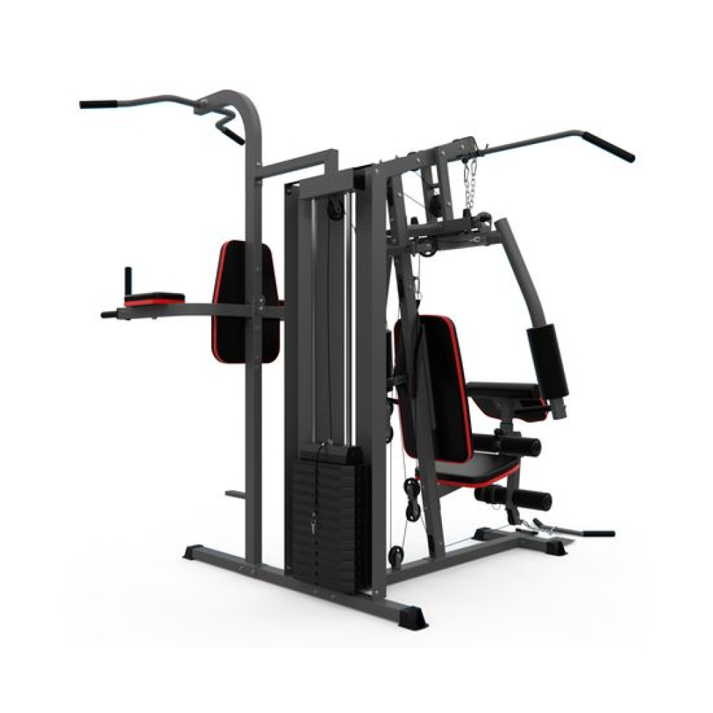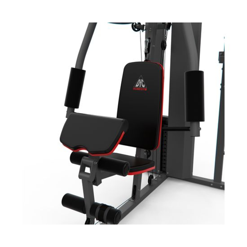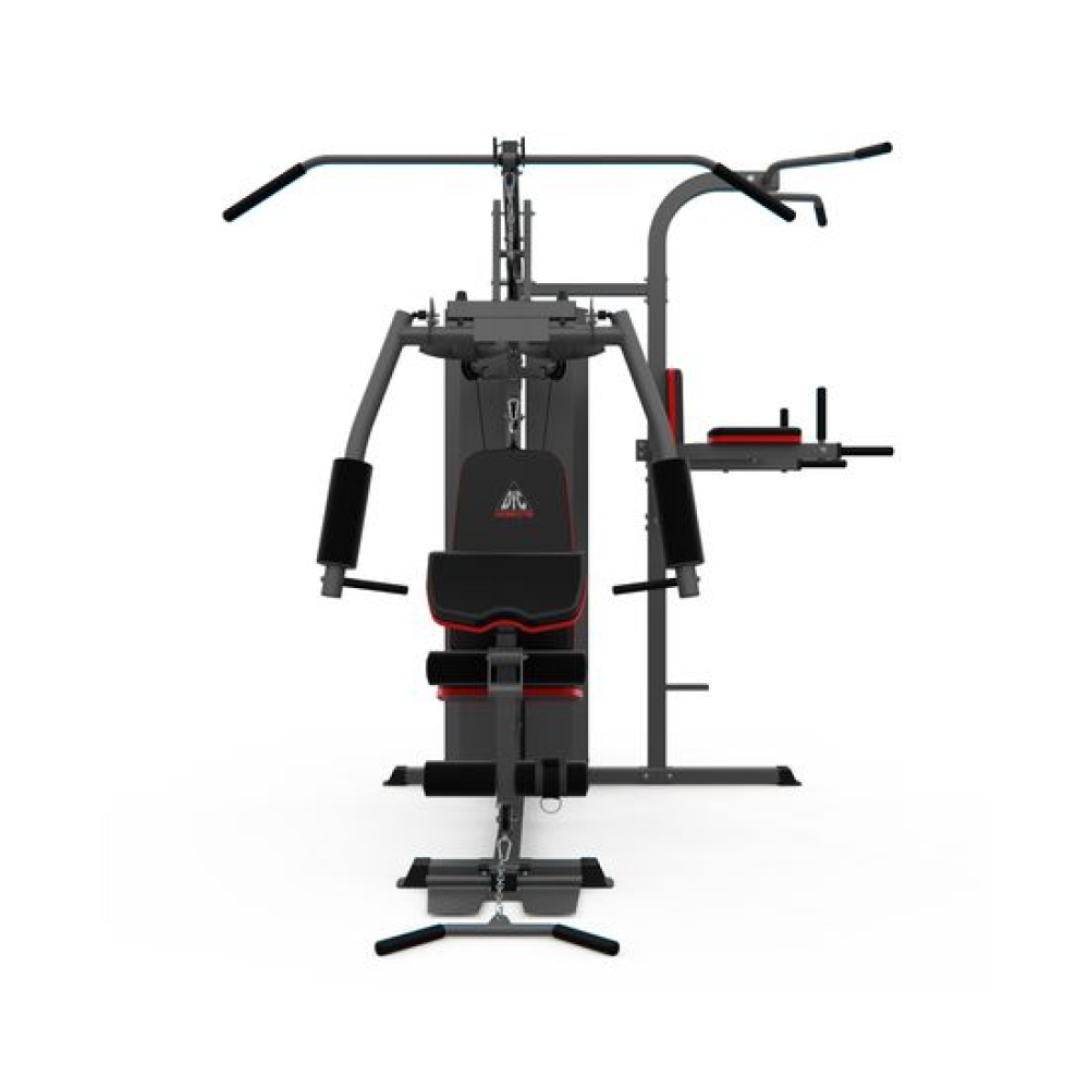 Многофункциональный силовой комплекс DFC D7004 оснащён множеством снарядов для упражнений на все группы мышц. Максимальный вес пользователя до 120 кг. Профиль основной трубы 70 х 50 х 1,5 мм. 11 весовых пластин в комплекте. Спинка регулируется по горизонтали на 3 уровня. Вес стека 72 кг, 1 блок – 6 кг.Доступные упражнения: Гребля сидя (для прокачки трапециевидных мышц) Сгибание колен (для прокачки прямой мышцы живота) Сгибание на бицепс (для прокачки бицепса и мышц предплечья) Сгибание на бицепс – обратный хват (для прокачки бицепса и мышц предплечья) Сгибание рук в запястье (для прокачки мышц предплечья) Сгибание ног (для прокачки мышц задней поверхности бедра) Разгибание ног (для прокачки квадрицепса) Наклон вперёд (для прокачки прямой мышцы живота и широчайшей мышцы спины) Тяга блока вниз прямыми руками (для прокачки большой грудной и дельтовидной мышц) Тяга верхнего блока к груди (для прокачки трицепса) Сведение рук (для прокачки большой грудной мышцы) Жим сидя перед собой/Баттерфляй Отведение ноги назад (для прокачки мышц задней поверхности бедра) Отведение ноги в сторону (для прокачки боковых мышц) Поднятие ног на брусьях (для прокачки мышц живота и бедёр) Поднятие ног в висе (для прокачки прямой и косых мышц живота)