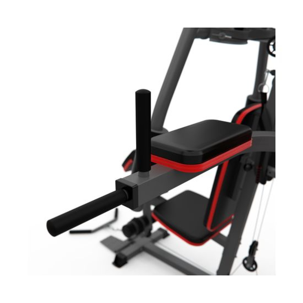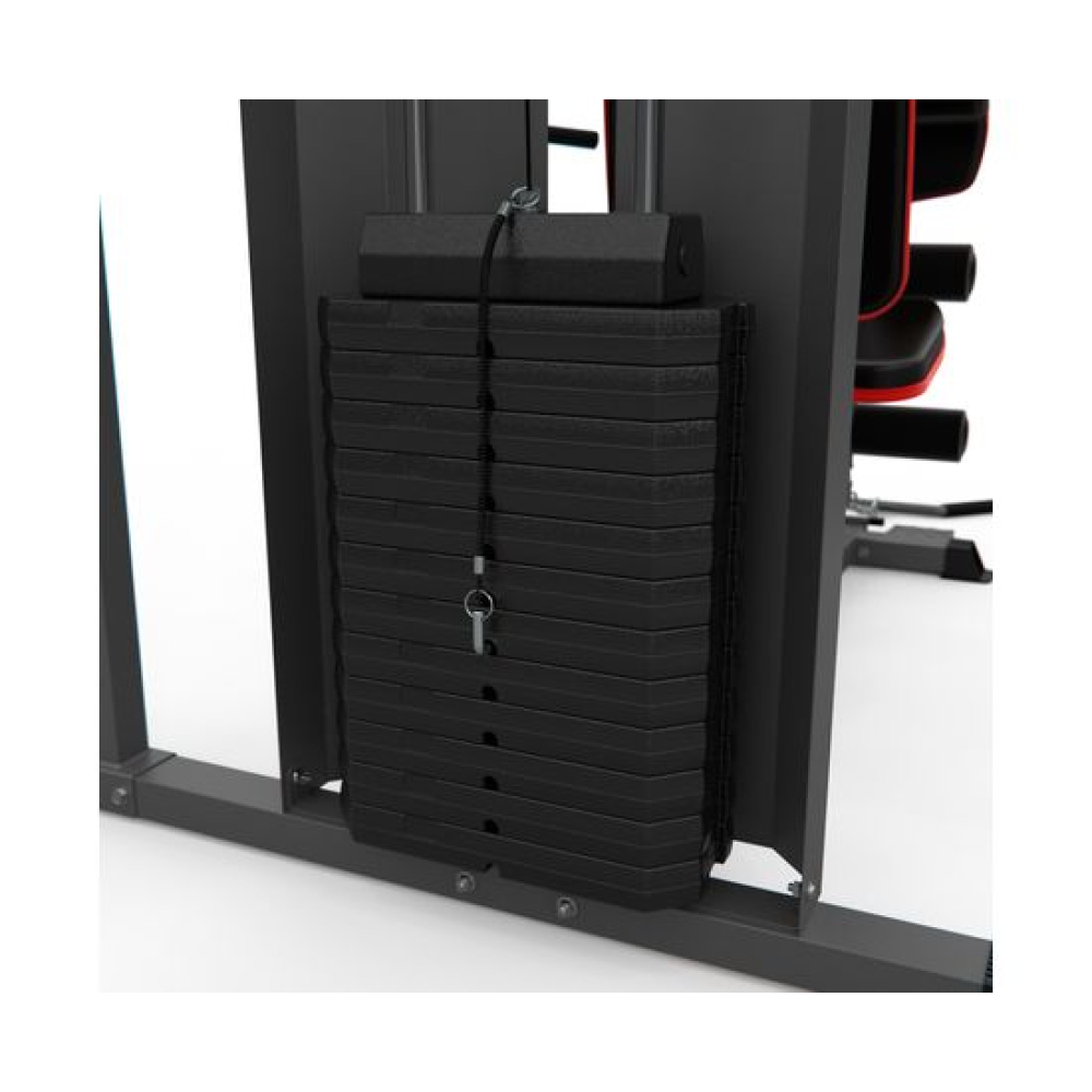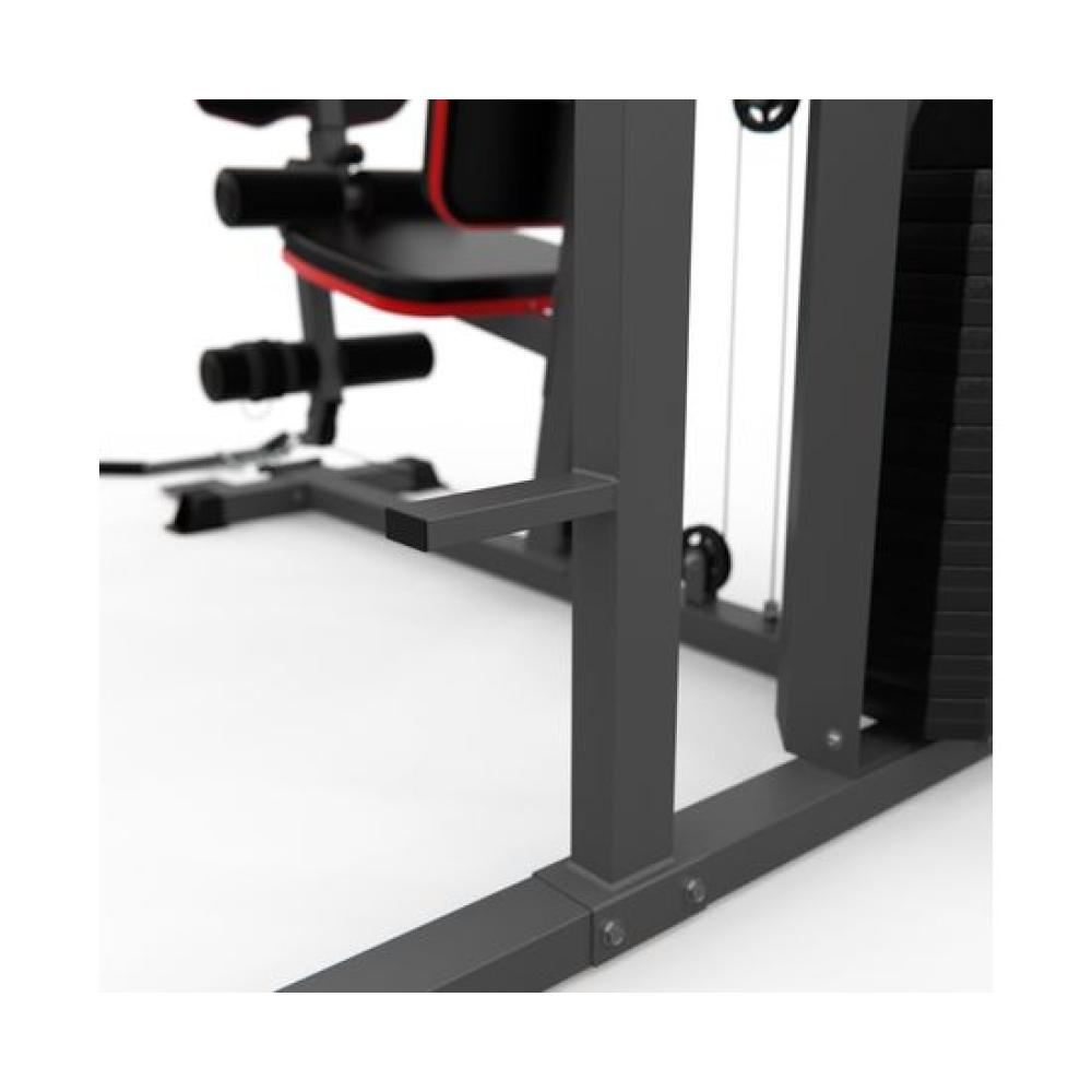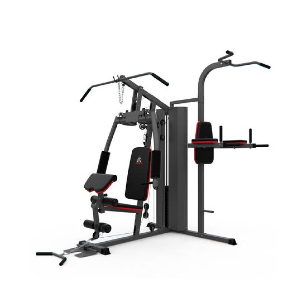 Многофункциональный силовой комплекс DFC D7004 оснащён множеством снарядов для упражнений на все группы мышц. Максимальный вес пользователя до 120 кг. Профиль основной трубы 70 х 50 х 1,5 мм. 11 весовых пластин в комплекте. Спинка регулируется по горизонтали на 3 уровня. Вес стека 72 кг, 1 блок – 6 кг.Доступные упражнения: Гребля сидя (для прокачки трапециевидных мышц) Сгибание колен (для прокачки прямой мышцы живота) Сгибание на бицепс (для прокачки бицепса и мышц предплечья) Сгибание на бицепс – обратный хват (для прокачки бицепса и мышц предплечья) Сгибание рук в запястье (для прокачки мышц предплечья) Сгибание ног (для прокачки мышц задней поверхности бедра) Разгибание ног (для прокачки квадрицепса) Наклон вперёд (для прокачки прямой мышцы живота и широчайшей мышцы спины) Тяга блока вниз прямыми руками (для прокачки большой грудной и дельтовидной мышц) Тяга верхнего блока к груди (для прокачки трицепса) Сведение рук (для прокачки большой грудной мышцы) Жим сидя перед собой/Баттерфляй Отведение ноги назад (для прокачки мышц задней поверхности бедра) Отведение ноги в сторону (для прокачки боковых мышц) Поднятие ног на брусьях (для прокачки мышц живота и бедёр) Поднятие ног в висе (для прокачки прямой и косых мышц живота)
