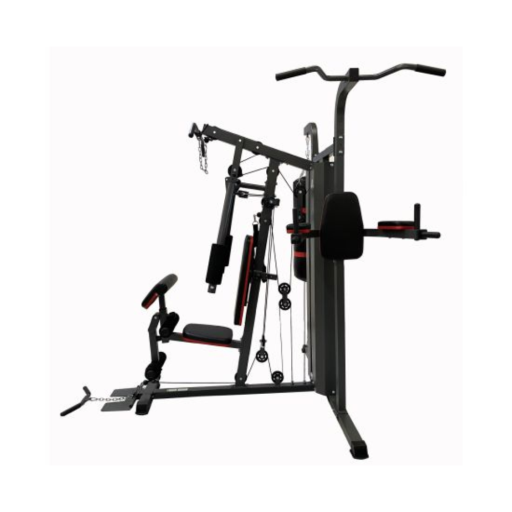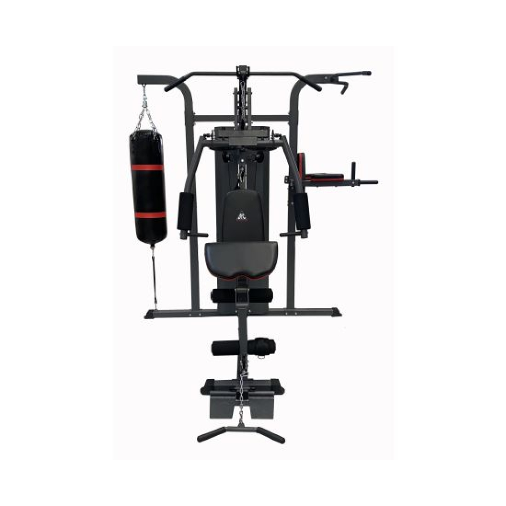 Силовой комплекс DFC D7006 для домашнего использования. Профиль основной трубы 70 х 50 х 1,5 мм. Стек весом 72 кг, состоит из 12-ти пластин.Доступные упражнения: Гребля сидя (для прокачки трапециевидных мышц) Сгибание колен (для прокачки прямой мышцы живота) Сгибание на бицепс (для прокачки бицепса и мышц предплечья) Сгибание на бицепс – обратный хват (для прокачки бицепса и мышц предплечья) Сгибание рук в запястье (для прокачки мышц предплечья) Сгибание ног (для прокачки мышц задней поверхности бедра) Разгибание ног (для прокачки квадрицепса) Наклон вперёд (для прокачки прямой мышцы живота и широчайшей мышцы спины) Тяга блока вниз прямыми руками (для прокачки большой грудной и дельтовидной мышц) Тяга верхнего блока к груди (для прокачки трицепса) Сведение рук (для прокачки большой грудной мышцы) Жим сидя перед собой/Баттерфляй Отведение ноги назад (для прокачки мышц задней поверхности бедра) Отведение ноги в сторону (для прокачки боковых мышц) Боксирование Поднятие ног (для прокачки мышц живота)