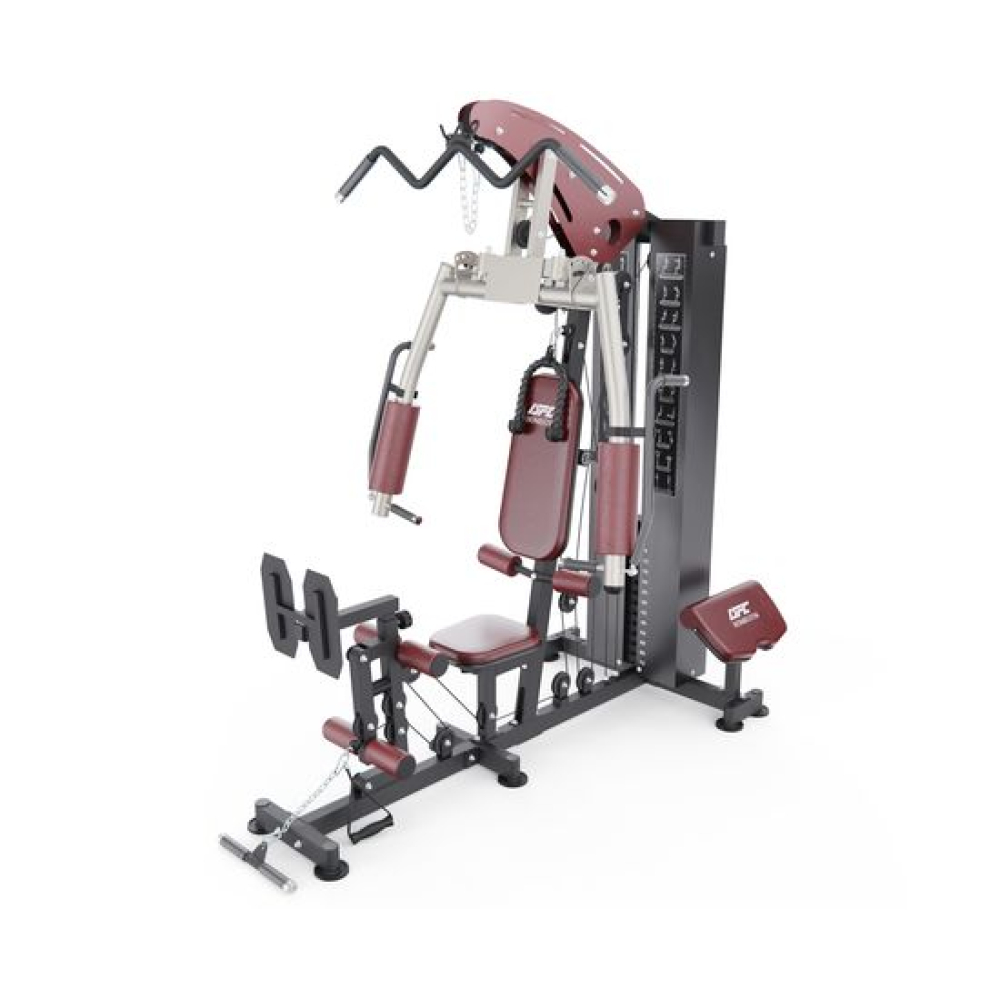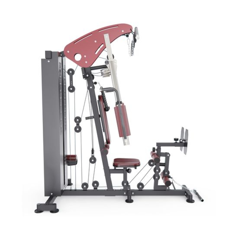Силовой комплекс DFC D7009 со стеком 72 кг — это современное многофункциональное оборудование, которое позволит вам создать полноценную домашнюю спортплощадку. Благодаря продуманной конструкции и внушительному стеку в 72 кг, комплекс подходит как для начинающих, так и для опытных атлетов. Основные преимущества• Универсальность применения: возможность выполнять широкий спектр упражнений на все группы мышц• Прочная конструкция: устойчивость и надежность при максимальных нагрузках• Большой стек: 72 кг весовых пластин для постепенного увеличения нагрузки• Компактность: оптимальное использование пространства при установке• Безопасность: продуманная система фиксации и страховочные механизмы Технические особенности конструкцииПрофиль рамы выполнен из высококачественной стали с параметрами 50×75×1.5 мм, что обеспечивает:• Исключительную прочность всей конструкции• Длительный срок службы• Надежную фиксацию всех элементов• Безопасность при максимальных нагрузках Технические характеристики• Максимальный вес стека: 72 кг• Общий вес конструкции: 158 кг• Габариты в собранном виде: 1500×1000×2050 мм• Максимальная нагрузка на пользователя: 150 кг• Материалы: высокопрочная сталь с антикоррозийным покрытием• Профиль конструкции: 50×75×1.5 мм• Нагрузка: регулируемая, 12 уровней Гарантия: длительный срок службы при соблюдении условий эксплуатации Комплекс позволяет эффективно прорабатывать:• Мышцы ног: жимы ногами, разгибания• Мышцы рук: жимы, разведение, сгибание• Плечевой пояс: различные варианты жимов и тяг• Корпус: упражнения на пресс и спину