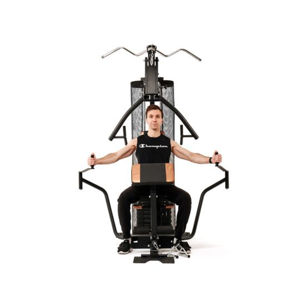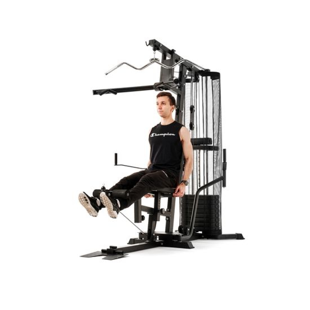 Комплекс DFC D5125-81.5 со стеком 81,5 кг для домашнего использования предназначен для прокачки всех групп мышц: рук и верхнего плечевого пояса, спины, грудных мышц, пресса, ног. Позволяет выполнять силовые упражнения с разным функционалом для наилучшей эффективности тренировки. Сиденье, спинка и парта для бицепса обиты нескользящим полипропиленом чёрного цвета с оранжевыми вставками. Максимальный вес пользователя — 200 килограмм.Опции силового тренажёра:1. Верхняя тяга (W-образный гриф в комплекте). Ручки грифа рифлёные, с нескользящей поверхностью. Максимальная нагрузка — 130 кг. Используется для тренировки мышц рук (бицепс, трицепс) и спины.2. Гребная тяга. Переключатель жима от груди и гребной тяги.3. Тяга снизу. Используется для силовых упражнений на мышцы спины, бицепса, ног. Для комфорта и безопасности предусмотрена платформа с рифлёной поверхностью. Рукоять с нескользящим покрытием входит в комплектацию. Максимальная нагрузка до 130 кг.4. Баттерфляй. Используется для тренировки большой грудной мышцы (в том числе стернального участка), малой грудной и мышц ключичного отдела, а также мышц рук: бицепс, трицепс, брахиалис, лучевой разгибатель кисти. Максимальная нагрузка — 130 кг.5. Ремень для тренировки спины. Используется верхнее крепление: упражнения выполняются по типу тяги верхнего блока с опорой на гиперэкстензию и металлическую платформу. Позволяет прокачать мышцы груди, трапеции, пресса, спины, шеи.6. Скамья со спинкой, партой для бицепса, съёмные валики. Такой набор позволяет тренировать большую группу мышц спины, ног, рук, пресса, груди. Удобное расположение гарантирует правильное положение тела во время тренировок и эффективность выполнения упражнений. Есть ограничение по нагрузке: 250 кг для спинки 200 кг для сиденья 150 кг для парты для бицепса (используется как подставка для упражнений на бицепс).