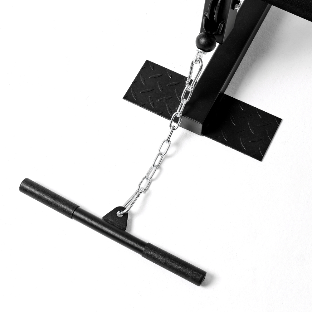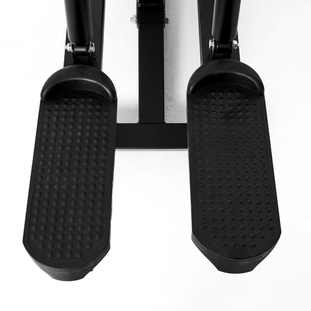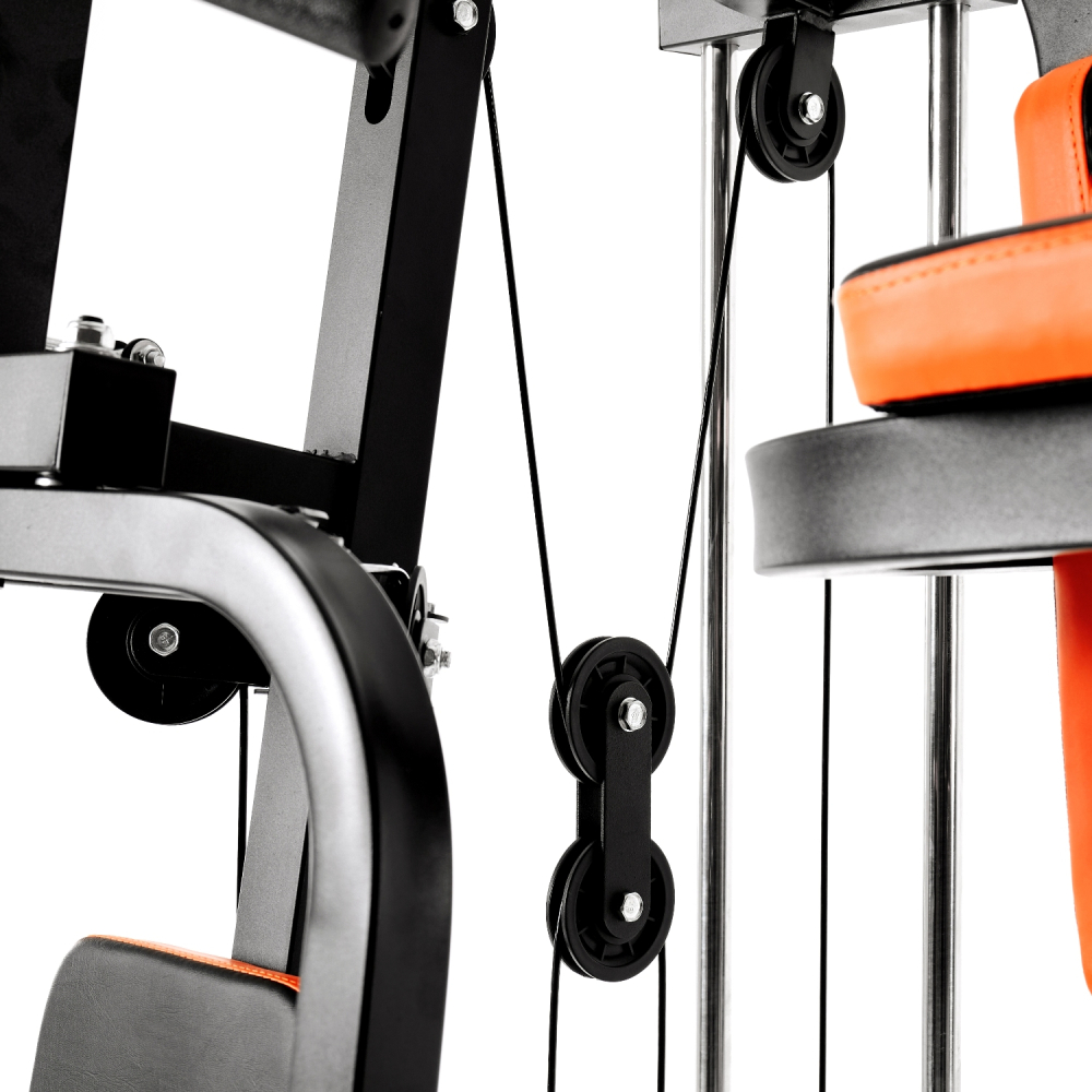 Силовой комплекс DFC из серии HomeGym D7002 предназначен для прокачки всех групп мышц: рук и верхнего плечевого пояса, спины, грудных мышц, пресса, ног. Позволяет выполнять силовые упражнения с разным функционалом для наилучшей эффективности тренировки. Сиденье и спинка с плотной обивкой чёрного цвета с оранжевыми вставками зафиксированны для комфортного выполнения упражнений. Парта для бицепса из той же ткани регулируется по высоте на 3 уровня. Степпер с гидроцилиндрами для дополнительной нагрузки. Максимальный вес пользователя — 120 килограмм. Комплекс не требует дополнительных снарядов - он полностью автономный. В комплект входит весовой стек массой 45 кг: 9 пластин по 4,5 кг и верхняя пластина 5 кг. Ролики на подшипниках обеспечивают плавное движение. Стальной трос толщиной 4 мм в защитной оплетке так же гарантирует безопасность при выполнении упражнений. Опции силового тренажёра: Парта для бицепса В комплект силового комплекса входит регулируемая по высоте на 3 уровня парта для бицепса. С её помощью вы сможете прокачивать мышцы рук: бицепса и трицепса. Допустимо использование как входящей в комплект рукоятки, так и гантелей, приобретаемых отдельно. Размер парты 40,5 х 29 х 5-7,5 см. Верхняя тяга (гриф) Ручки грифа с нескользящей поверхностью. Используется для тренировки мышц рук (бицепс, трицепс) и спины. Для удобства перед упражнением снимите парту для бицепса. Длина грифа 98 см. Баттерфляй Используется для тренировки большой грудной мышцы (в том числе стернального участка), малой грудной и мышц ключичного отдела, а также мышц рук: бицепс, трицепс, брахиалис и лучевой разгибатель кисти. Валики у баттерфляя длиной 22 см и диаметром 8,5 см. Брусья для отжиманий Отжимания на брусьях стимулируют развитие мышц всего тела. Они расположены таким образом, чтобы пользователь смог выполнять упражнения в зависимости от собственных потребностей: стандартные отжимания, с акцентом на трицепс, поднятие ног и прочие. Поручни брусьев находятся на высоте 163 см от пола, их размер составляет 28 х 12 х 5 см. Спинка размерами 43 х 25 х 5 см. Скамья со спинкой и валики Удобное расположение скамьи гарантирует правильное положение тела во время тренировок и эффективность выполнения упражнений. Размер спинки скамьи 67,5 х 23 х 5 см, а сиденья - 38,5 х 26-30 х 4,5 см. Валики для экстензии ног прокачивают все мышцы бедра. Их длина 15 см, а диаметр - 7 см. Степпер Степпер с гидравлическими цилиндрами служит не только для поддержки перед упражнениями на брусьях, но и для разогрева икроножных мышц. Размер педалей степпера составляет 33,5 х 11,5 см, расстояние между педалями 10,5 см. Тяга снизу Используется для силовых упражнений на мышцы спины, бицепса, ног. Для комфорта и безопасности предусмотрена платформа толщиной 3 мм с рифлёной поверхностью. Общая длина платформы 31 см. Тяга сверху Перецепив рукоятку, вы сможете выполнять упражнения на мышцы не только спины, но и трицепса. Рукоятка длиной 38,5 см входит в комплектацию.