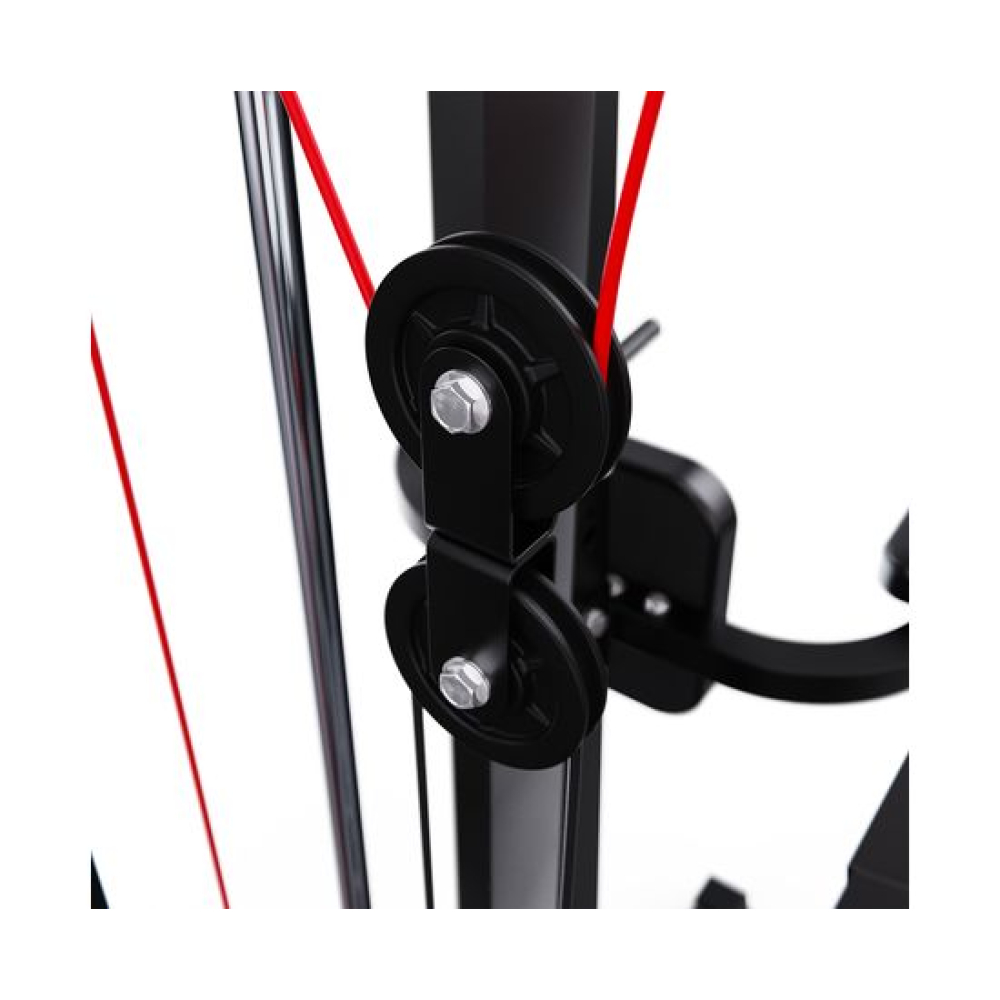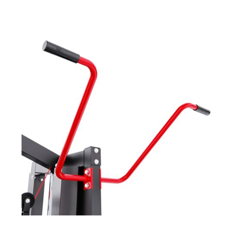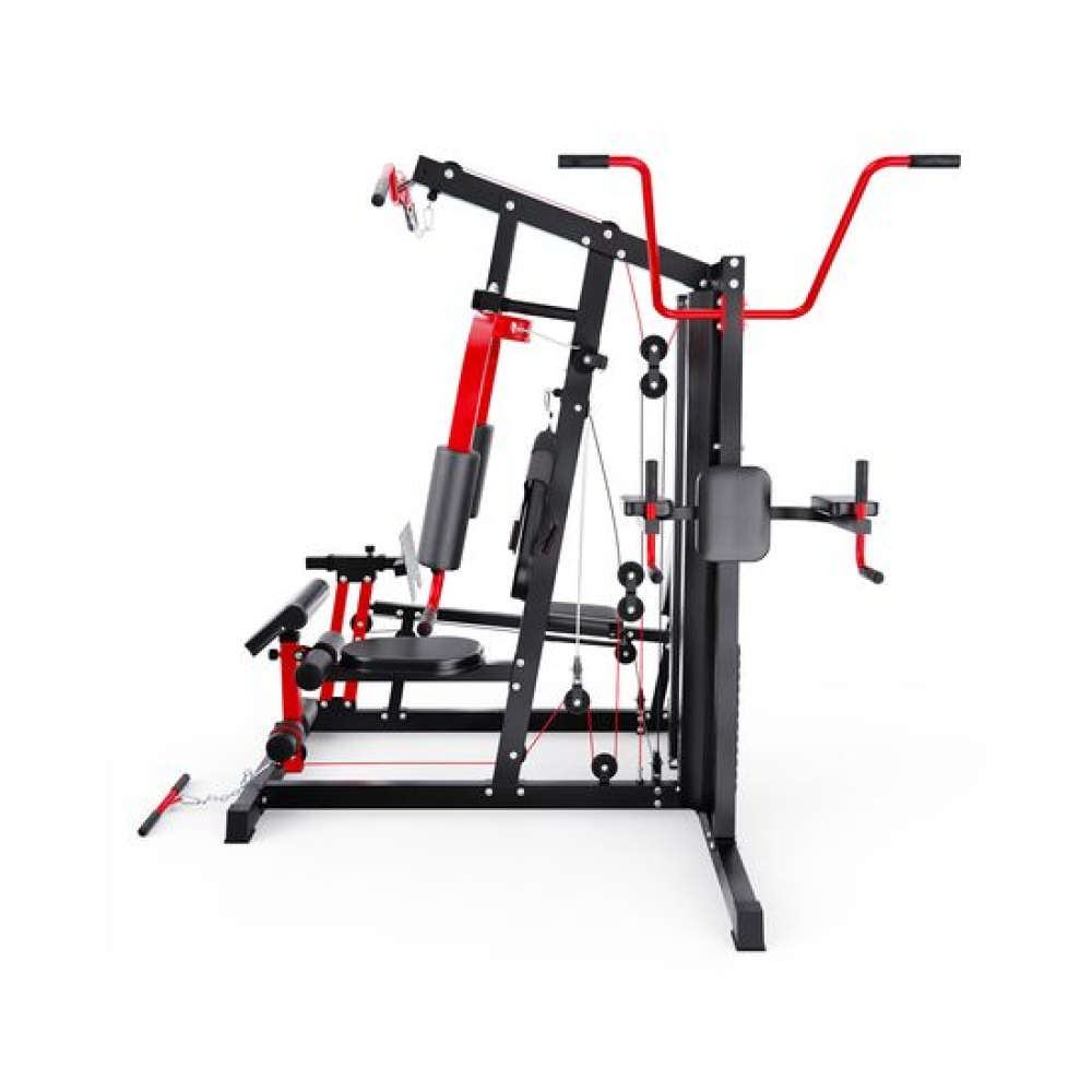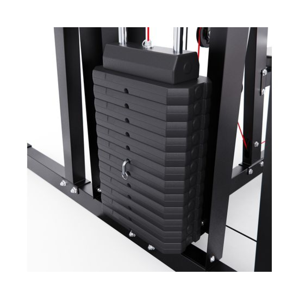 DFC WRK-5200 — универсальный силовой комплекс для домашнего спортзала. Модель создана специально для тех, кто хочет полноценно тренироваться дома без очередей и абонементов. Прочная рама с профильной трубой 50 х 75 мм выдерживает активные нагрузки, а допустимый вес пользователя до 120 кг делает комплекс надёжным выбором для большинства атлетов.Одна станция заменяет несколько тренажёров: высокая и низкая тяга, жим от груди «баттерфляем», толчок вперёд, тяга назад, гребля, захваты руками и ногами и даже «удары ногами» благодаря специальному узлу. Конструкция поддерживает работу как с одинарной, так и с двойной перекладиной, позволяя разнообразить занятия и точечно корректировать фигуру.Система на подшипниковых шкивах обеспечивает ровное, бесшумное движение тросов и кабелей. Весовой стек 66 кг разбит на удобные плиты, что даёт возможность постепенно повышать нагрузку и прогрессировать без рывков.Обрезиненные рукоятки гарантируют надёжный хват и предотвращают скольжение ладоней; мягкие валики уменьшают давление на ноги и руки, повышая комфорт при выполнении сгибаний, разгибаний и блоковых упражнений.DFC WRK-5200 компактен для своего функционала, прост в обслуживании и готов к интенсивным ежедневным тренировкам. С ним вы сможете проработать всё тело, увеличить силу, скорректировать рельеф и поддерживать отличную физическую форму, не выходя из дома.