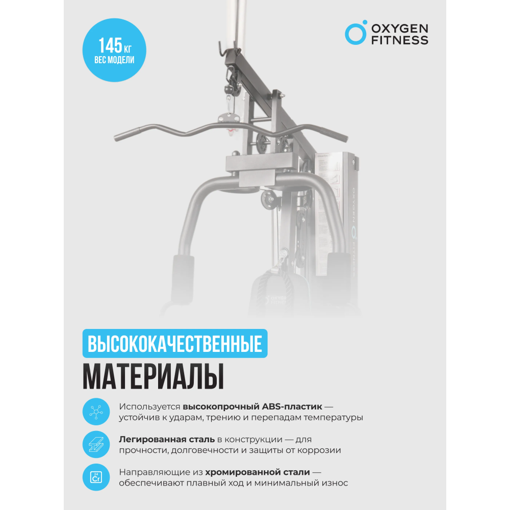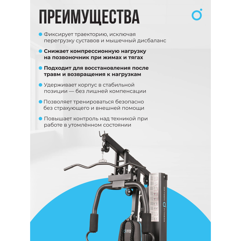 Силовой комплекс OXYGEN FITNESS NOLAN станет отличным выбором для домашних тренировок или для использования в корпоративных фитнес-клубах, обеспечивая эффективность и комфорт во время занятий.