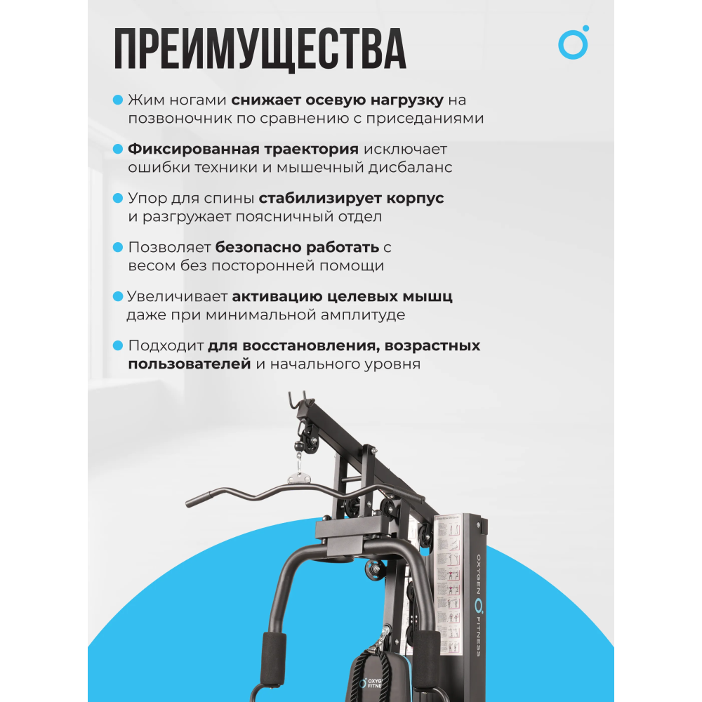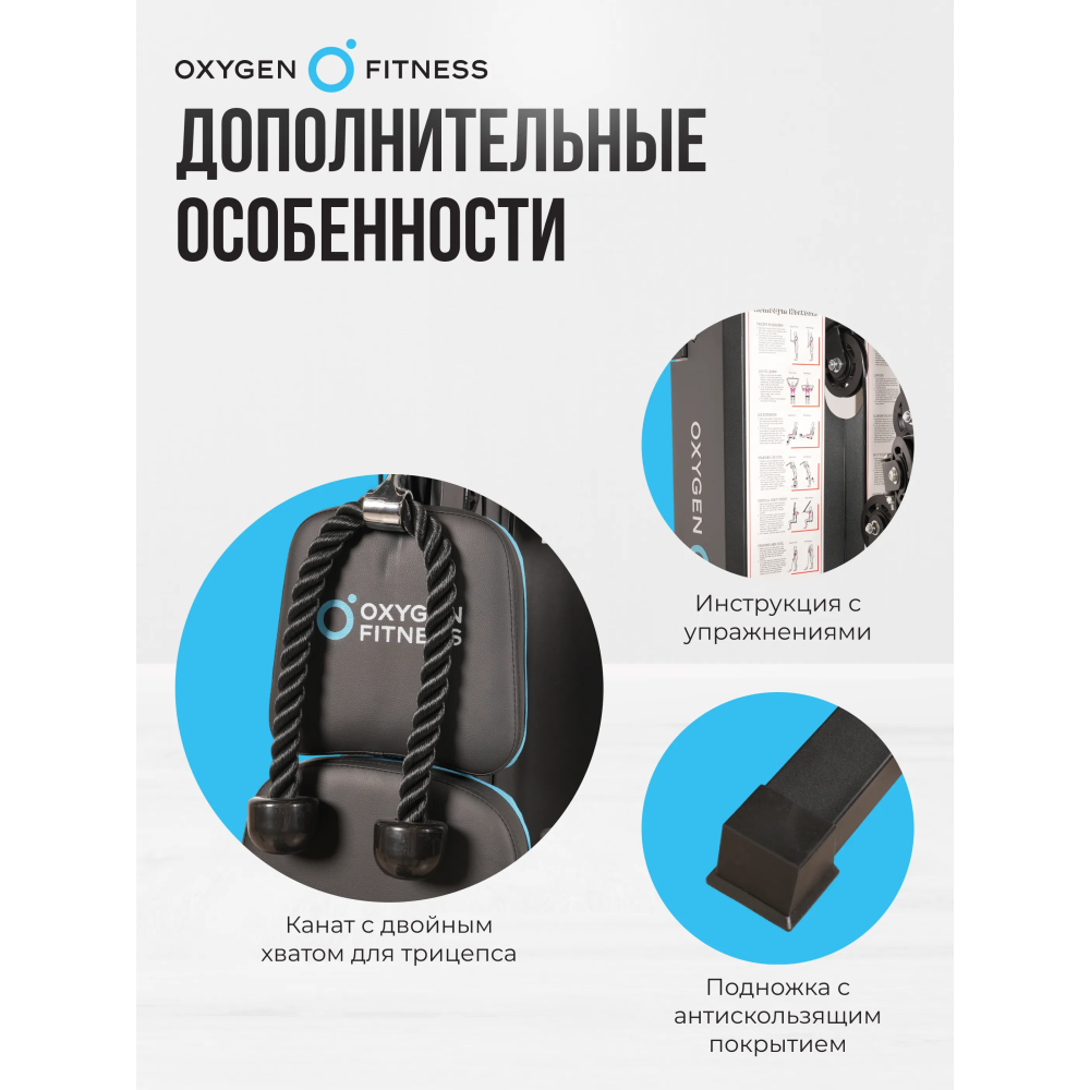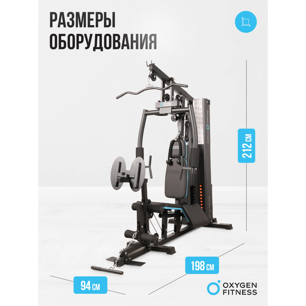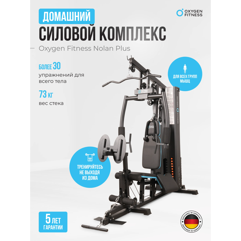 Силовой комплекс OXYGEN FITNESS NOLAN PLUS станет отличным выбором для домашних тренировок или для использования в корпоративных фитнес-клубах, обеспечивая эффективность и комфорт во время занятий.