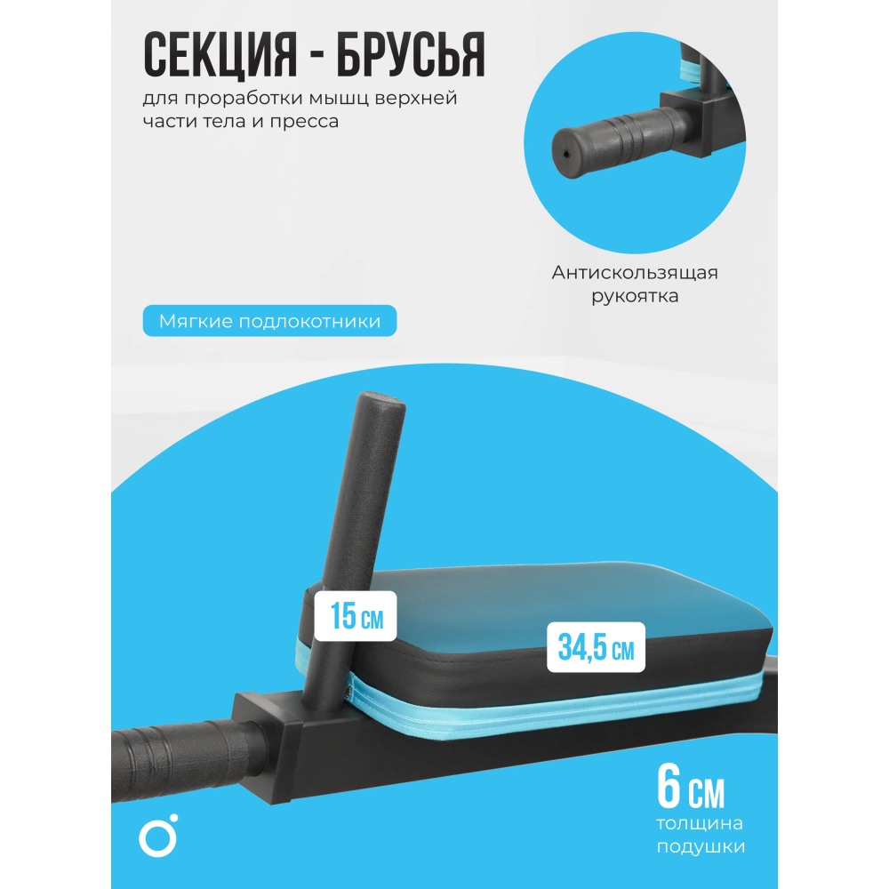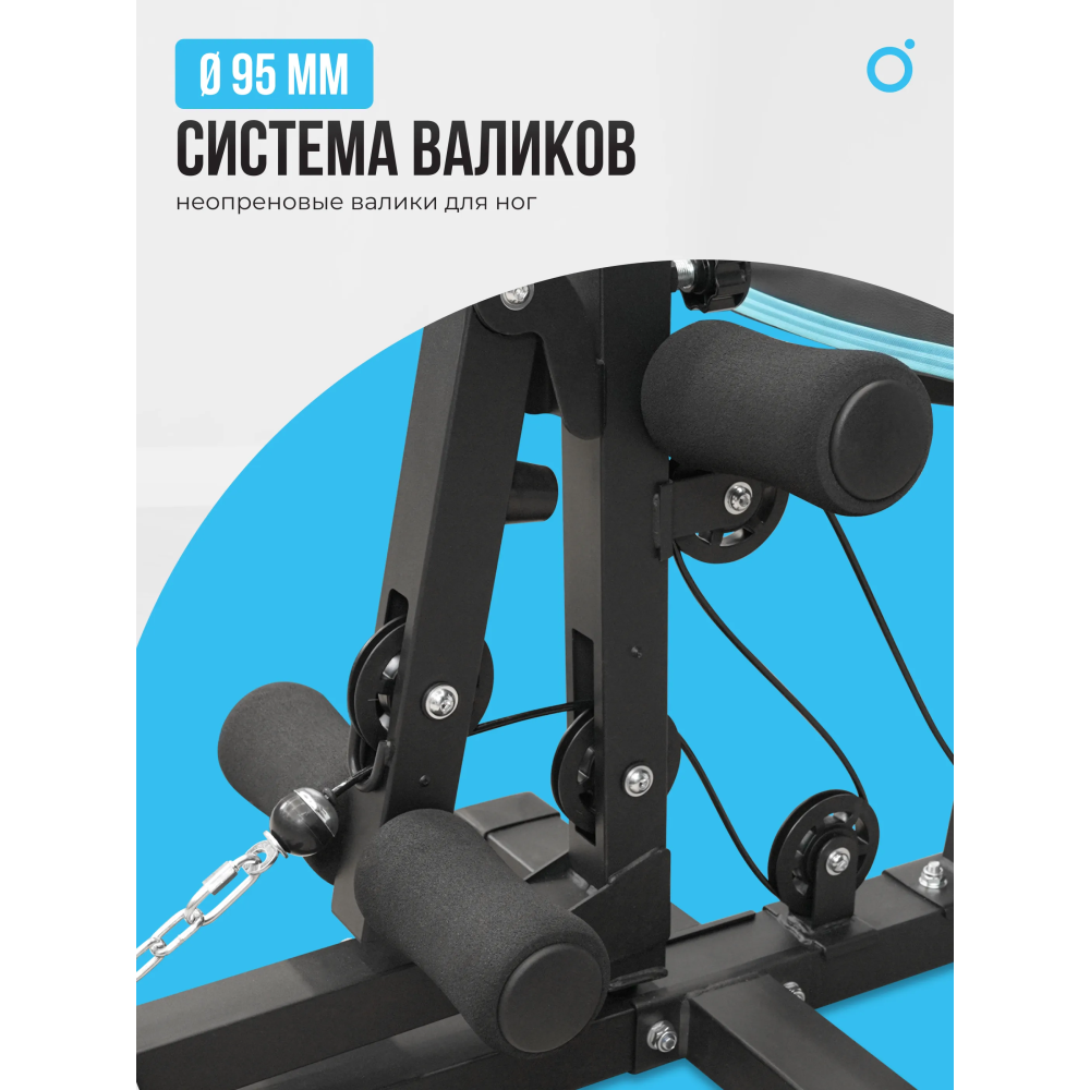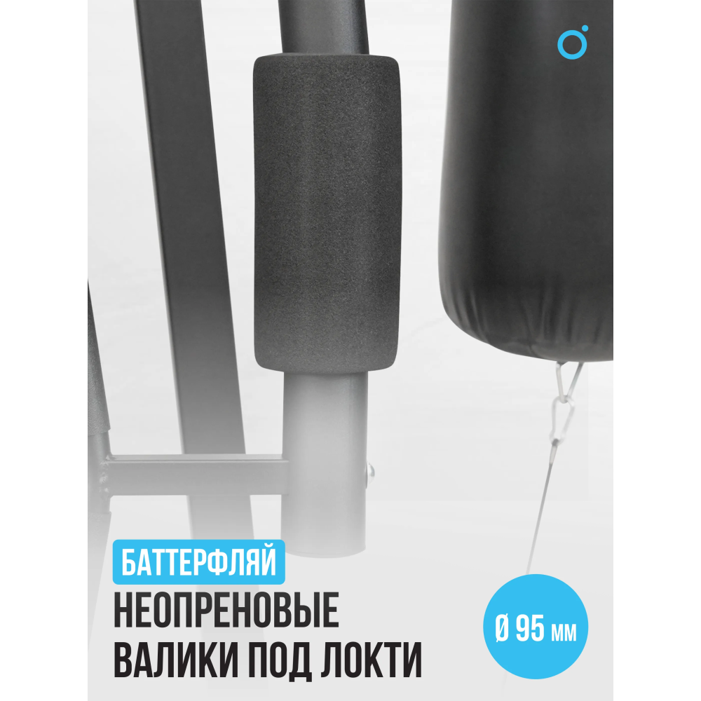 | Дополнительно | Подвесной мешок: обивка экокожа, вес - 18-20 кг. Брусья, турник, поднятие ног, кольца для груши. Размеры подушек: спинка - 22.5*39*6, подлокотники - 34.5*15*6, скамья для пресса: спинка - 42*32*6, сиденье - 121*31.5*6, жим ногами: изголовье - 24*23*6, спинка - 50*30*6, сиденье - 39.5*35*6, неопреновые валики Ф85 - 4 пары, неопреновые валики под локти - Ф95 |