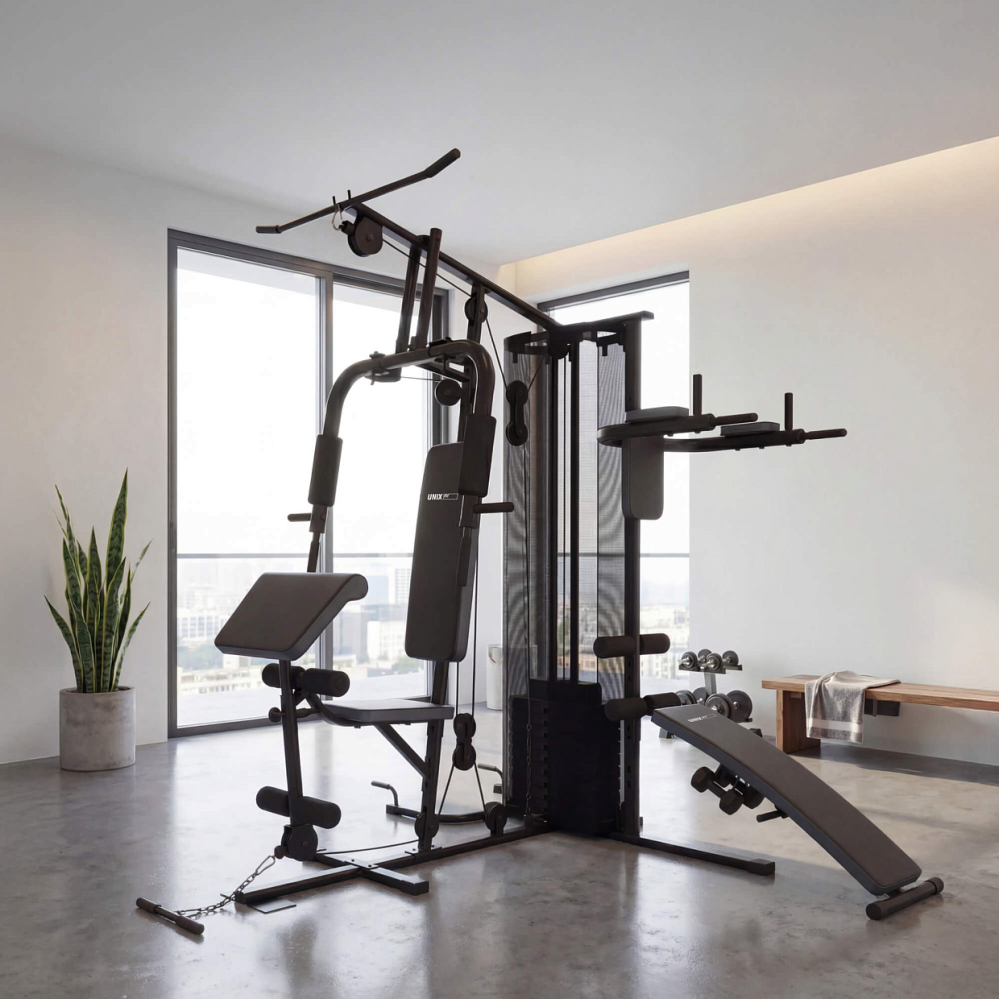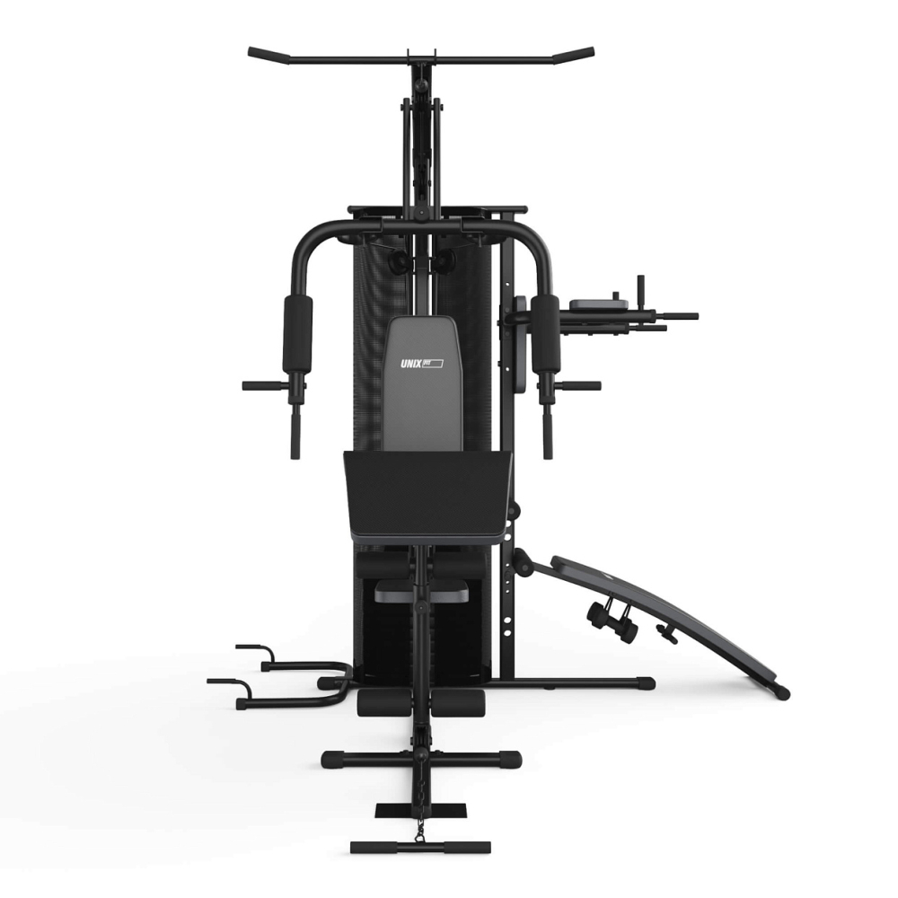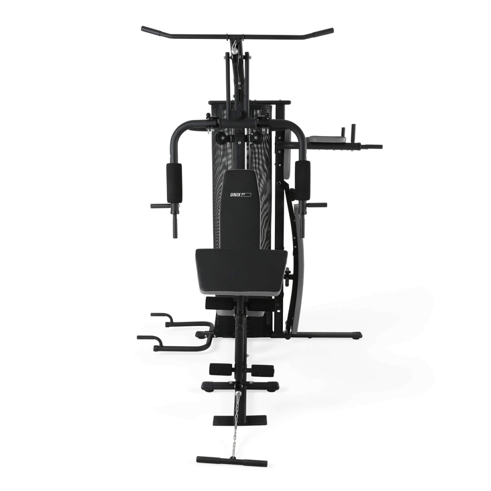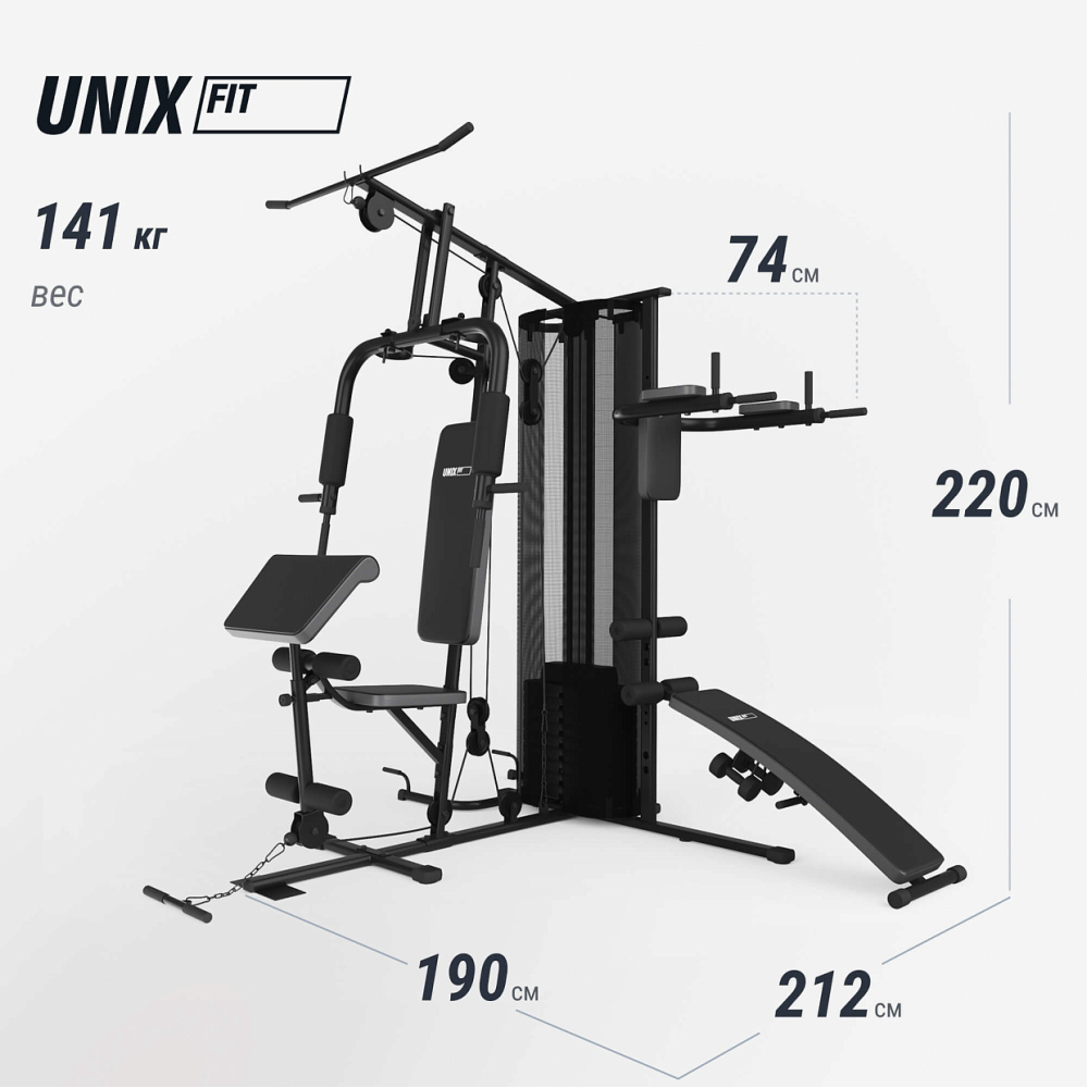 UNIX Fit BLOCK 70 MULTI – это универсальный тренажер с широким набором упражнений на все группы мышц. Широкий спектр силовых занятий, ограниченный лишь вашим воображением, делает силовой агрегат UNIX Fit BLOCK 70 MULTI максимально универсальным. Тренажер создан из высококачественных комплектующих для высокой надежности и долгого срока службы, а усиленная конструкция рамы обеспечивает высокую стабильность при выполнении упражнений. Благодаря продуманному техническому решению, спортивные занятия обеспечены высокой плавности выполняемых движений. Легкость и простота настройки делает тренажер максимально удобным и функциональным в использовании, так переход к выполнению другого упражнения занимает минимум времени. . Комплекс предлагает огромное количество упражнений на все группы мышц: • Рук и верхнего плечевого пояса • Пресса • Спины, ног и ягодиц и многое другое Базовые функции: • Тяговый блок • Верхние тяги • Боковые тяги • Нижние тяги • Жим ногами • Регулируемая скамья • Турник Габариты: 190x220x212 см Вес тренажера: 141,25 кг Максимальный вес пользователя: 150 кг
