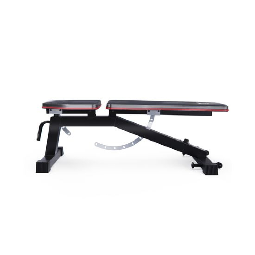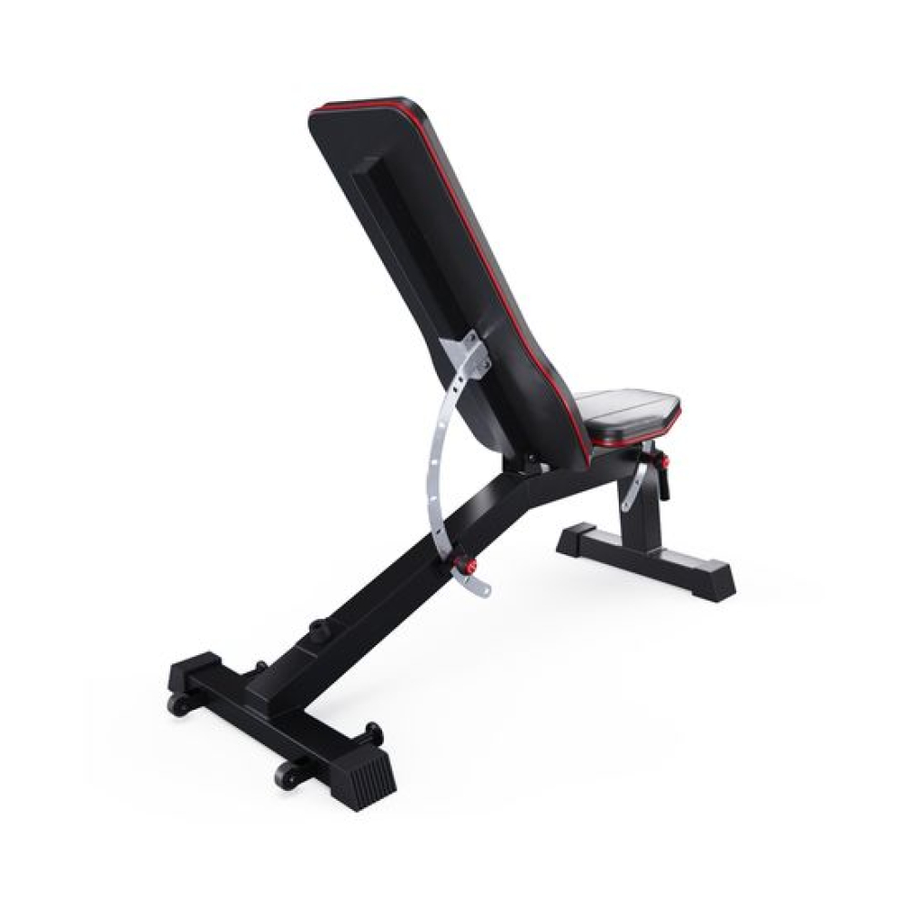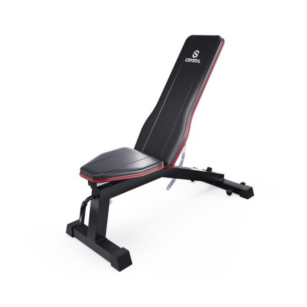 Скамья спортивная универсальная DFC CRYSTAL SJ804 — это идеальное решение для тех, кто хочет организовать полноценный тренажерный зал у себя дома. Этот надежный и многофункциональный домашний тренажер предназначен для выполнения различных упражнений, направленных на развитие грудных мышц, спины, плеч, пресса и бедер. Скамья для жима подходит как для новичков, так и для опытных атлетов, обеспечивая комфорт и безопасность во время тренировок.Скамья для жима лежа способна выдерживать максимальную нагрузку до 300 кг, что делает её надежным и безопасным выбором для тренировок. Скамья изготовлена из легированной стали Q235, обеспечивая высокую прочность и долговечность. Профиль рамы размером 75 x 50 x 1,5 мм гарантирует, что скамья будет оставаться стабильной даже при максимальных нагрузках.Набивка спинки и сиденья толщиной 50 мм из мягкой эластичной экокожи и слоя пены с эффектом памяти обеспечивает комфорт во время тренировок, позволяя снизить мышечную усталость и обеспечивая отличную поддержку.Скамья спортивная имеет 9 уровней регулировки спинки и 3 уровня регулировки сиденья, чтобы быстро преобразовать ее для тренировки в прямое, наклонное и даже отрицательное положение. Угол наклона спинки варьируется от -21° до 85°, что позволяет выполнять широкий спектр упражнений, включая жим лежа и пресс. Сиденье также имеет возможность наклона от 0° до 30°, что добавляет гибкости в тренировочный процесс. Высота от сиденья до пола равна 52 см.На заднем стабилизаторе расположены крепления для эспандеров (эспандеры в комплект не входят), что позволяет разнообразить тренировки и добавлять элементы сопротивления. Скамья для пресса также оснащена транспортировочными роликами, что облегчает её перемещение по помещению. Ручка под сиденьем предназначена для удобного подъема скамьи, что делает её использование еще более комфортным.Большие ножки скамьи для фитнеса прорезинены, чтобы защитить пол от царапин, а противоскользящая конструкция всегда обеспечивает устойчивое положение.