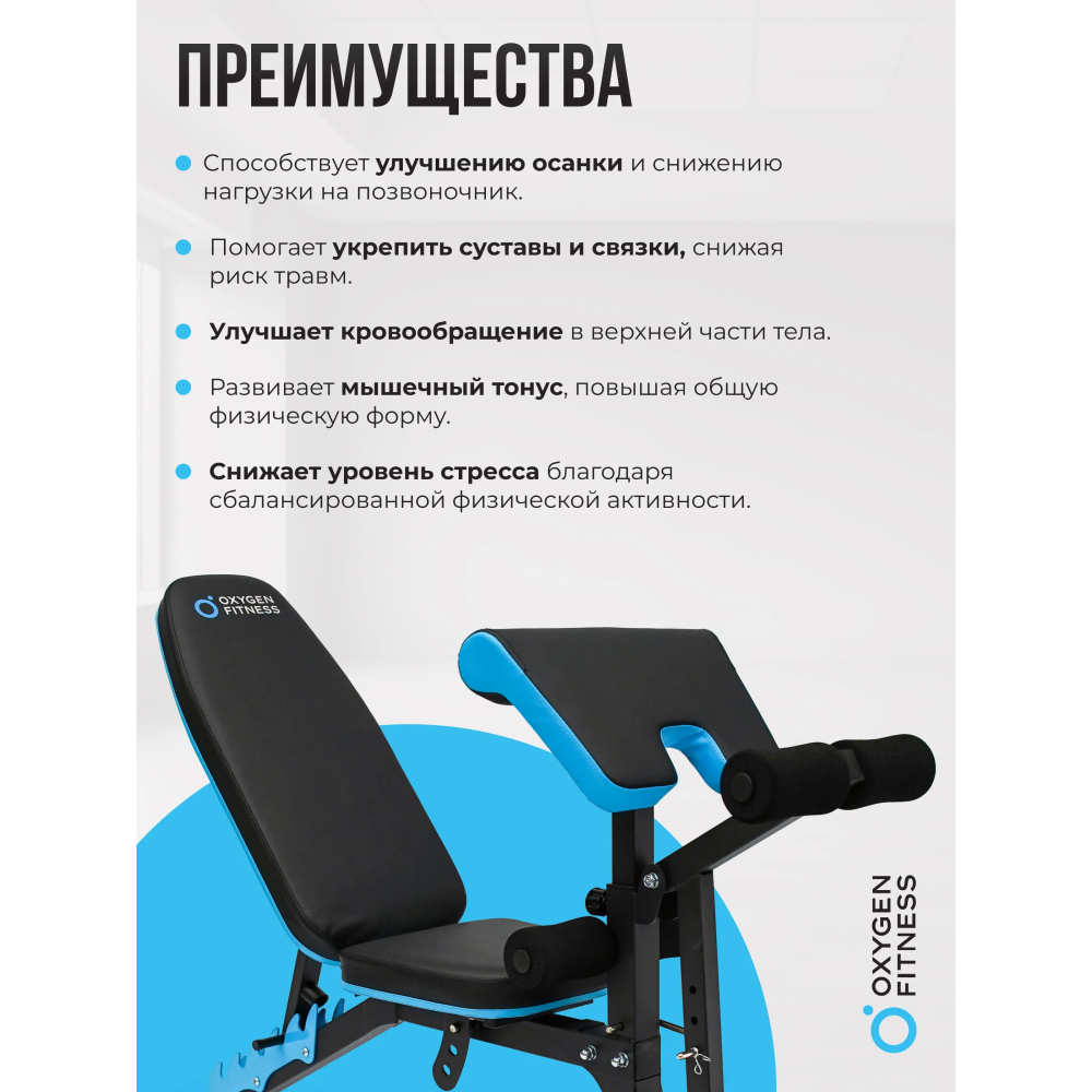 Скамья для жима OXYGEN FITNESS VIRGO — это надежное и функциональное оборудование, созданное для выполнения силовых упражнений прямо у вас дома. С ее помощью вы сможете эффективно развивать верхнюю и нижнюю части тела. Компактные размеры и продуманный дизайн обеспечивают удобство использования и позволяют легко интегрировать скамью в любое пространство.